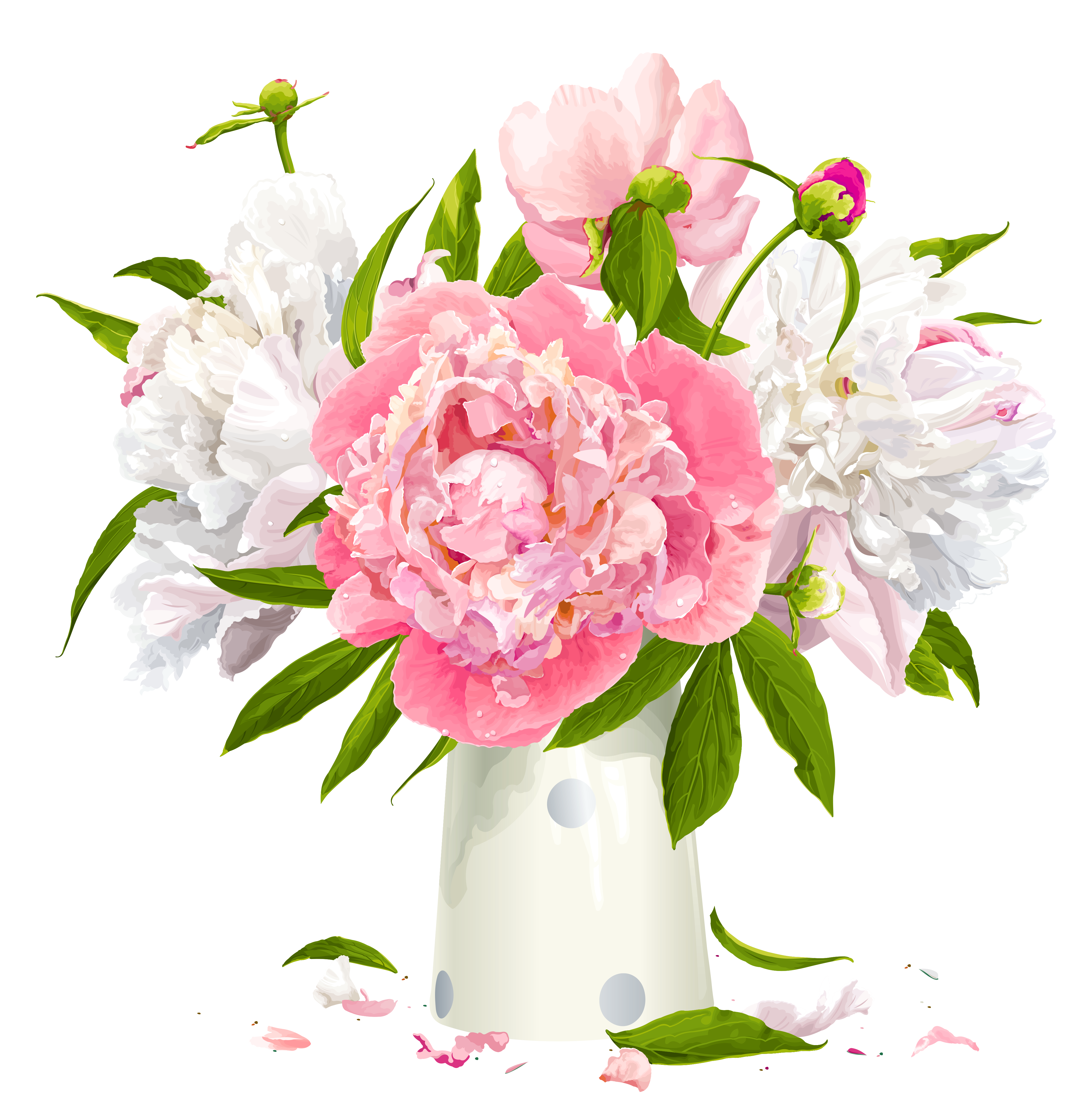 This Clipart Image: "Vase with White and Pink Peonies Clipart" is part of