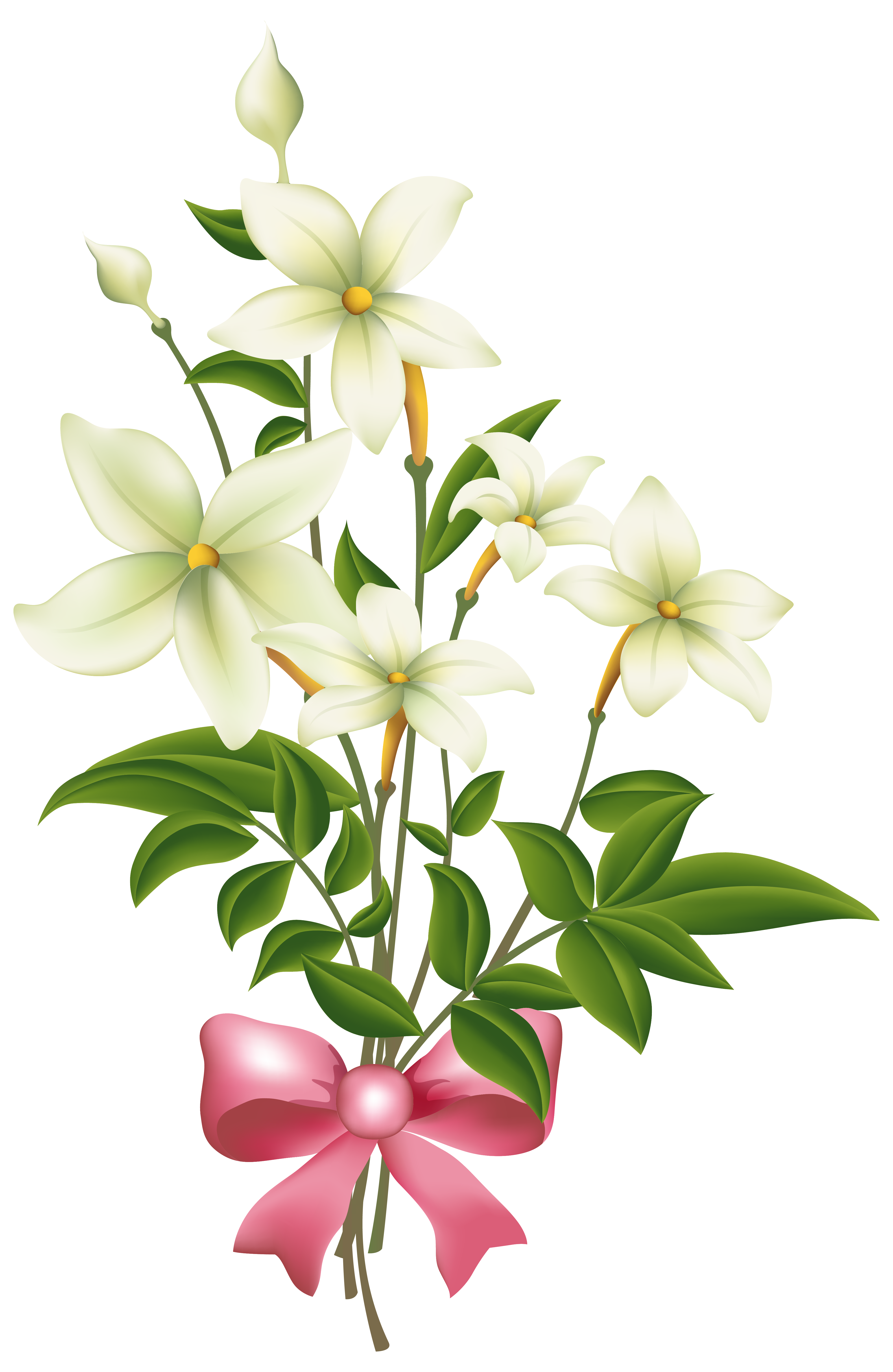 This Clipart Image: "White Flowers with Pink Bow PNG Clipart Image" is part of