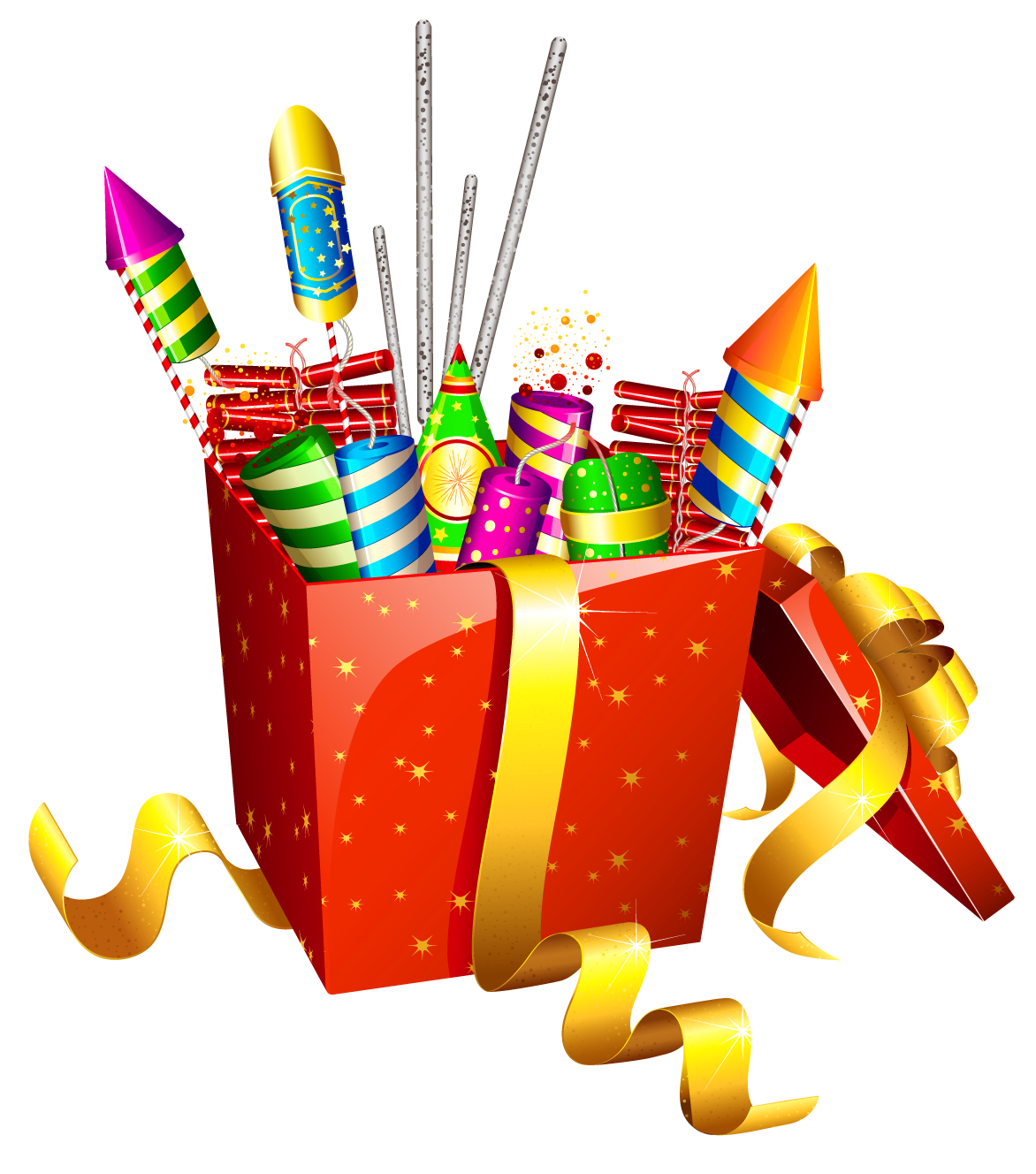 This Clipart Image: "Red Present Box with Fireworks PNG Clipart" is part of
