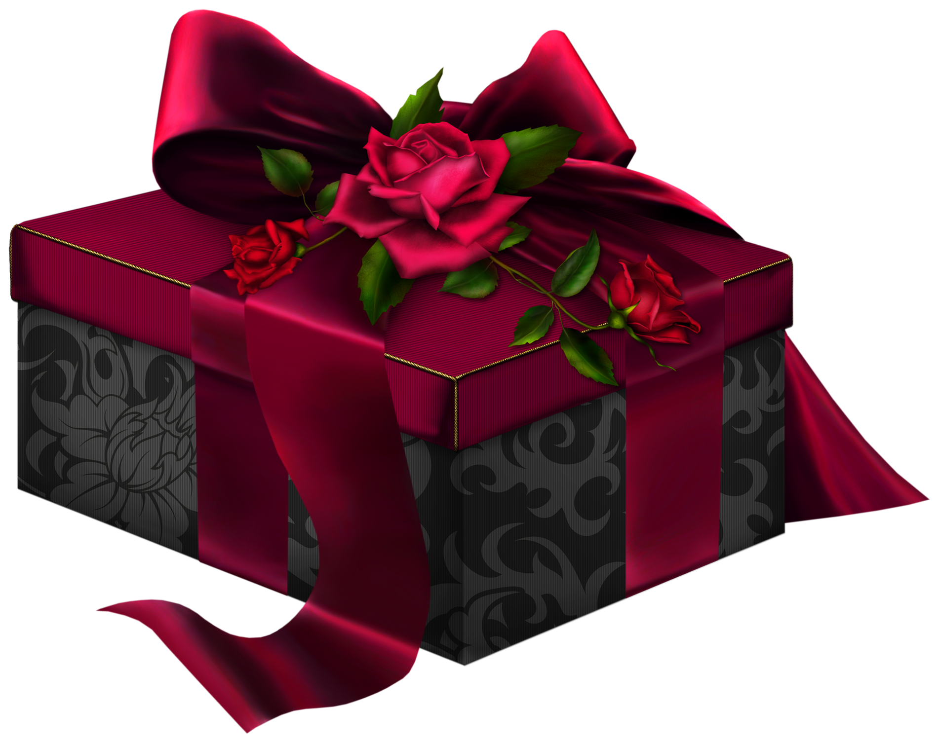 This Clipart Image: "Red and Black 3D Present with Roses Clipart" is part of