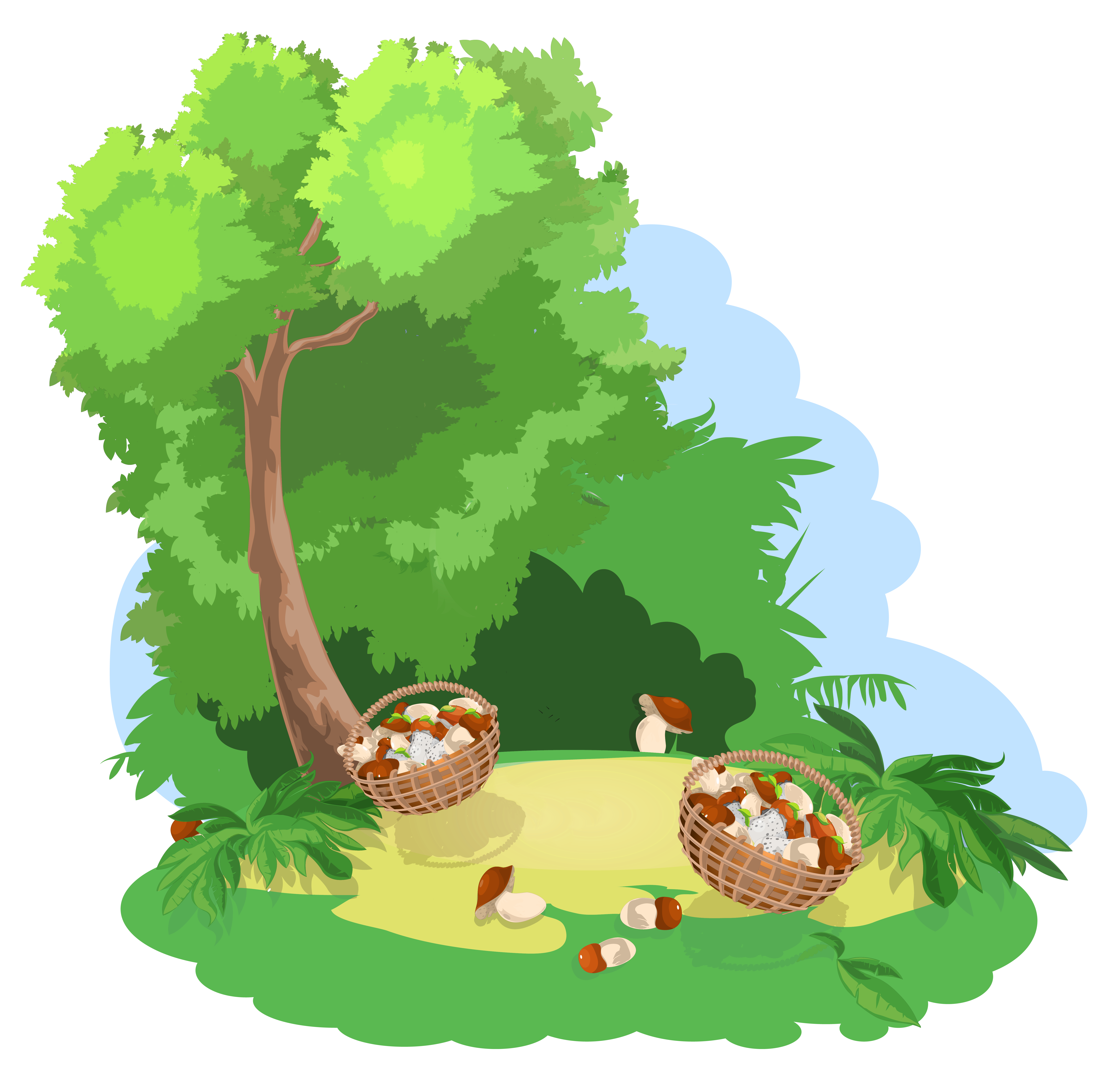 This Image: "Decoration with Tree and Baskets of Mushrooms PNG Image" is part of