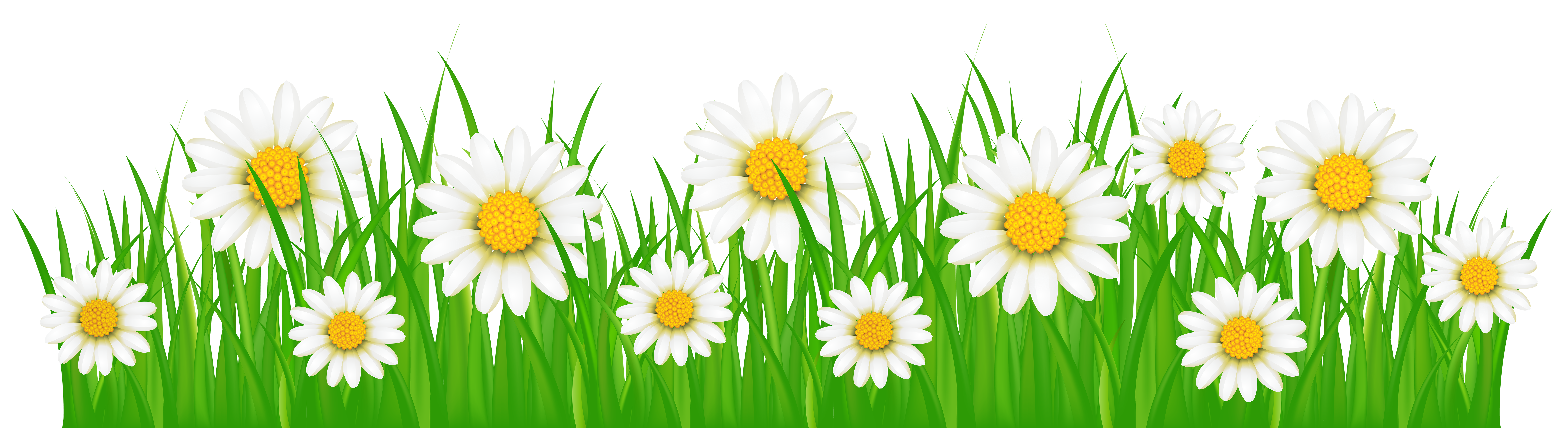 This Clipart Image: "Grass Ground with White Flowers PNG Clip Art Image" is part of
