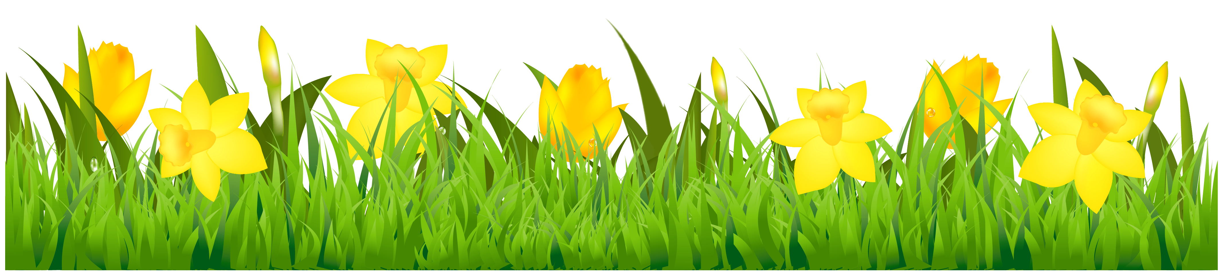 This Clipart Image: "Grass with Daffodils PNG Clipart" is part of