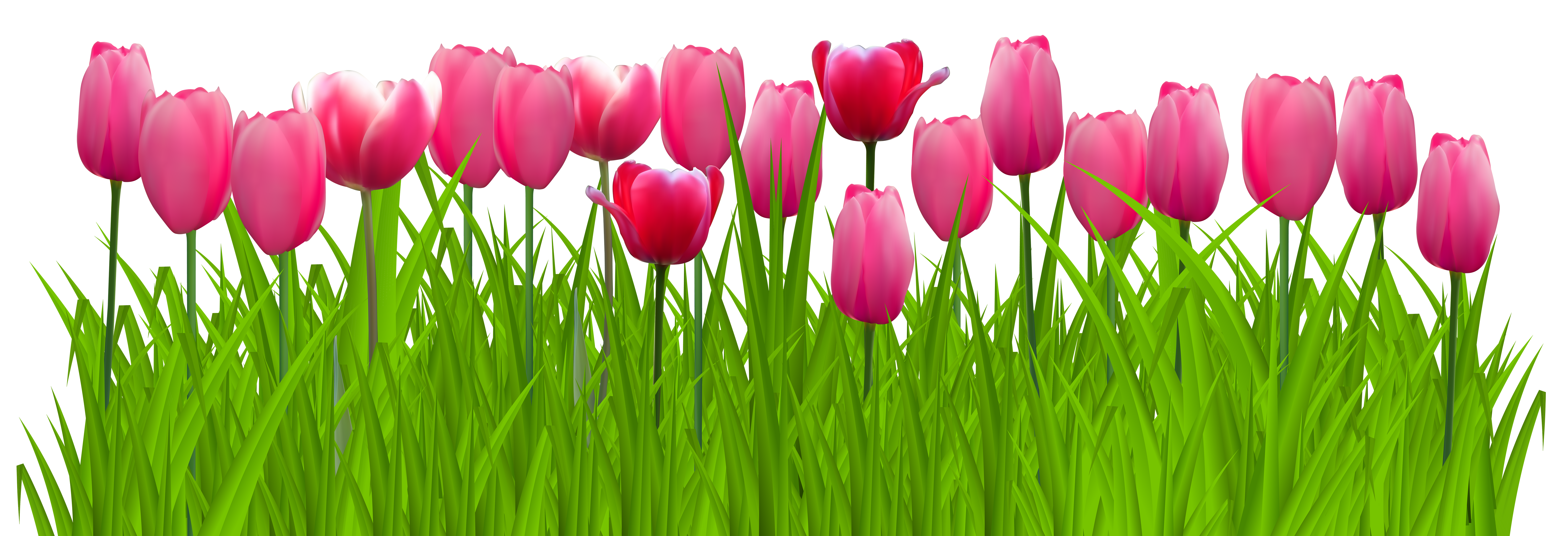 This Clipart Image: "Grass with Pink Tulips PNG Clip Art Image" is part of