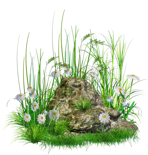 This Clipart Image: "Stone with Grass and Flowers png Clipart" is part of