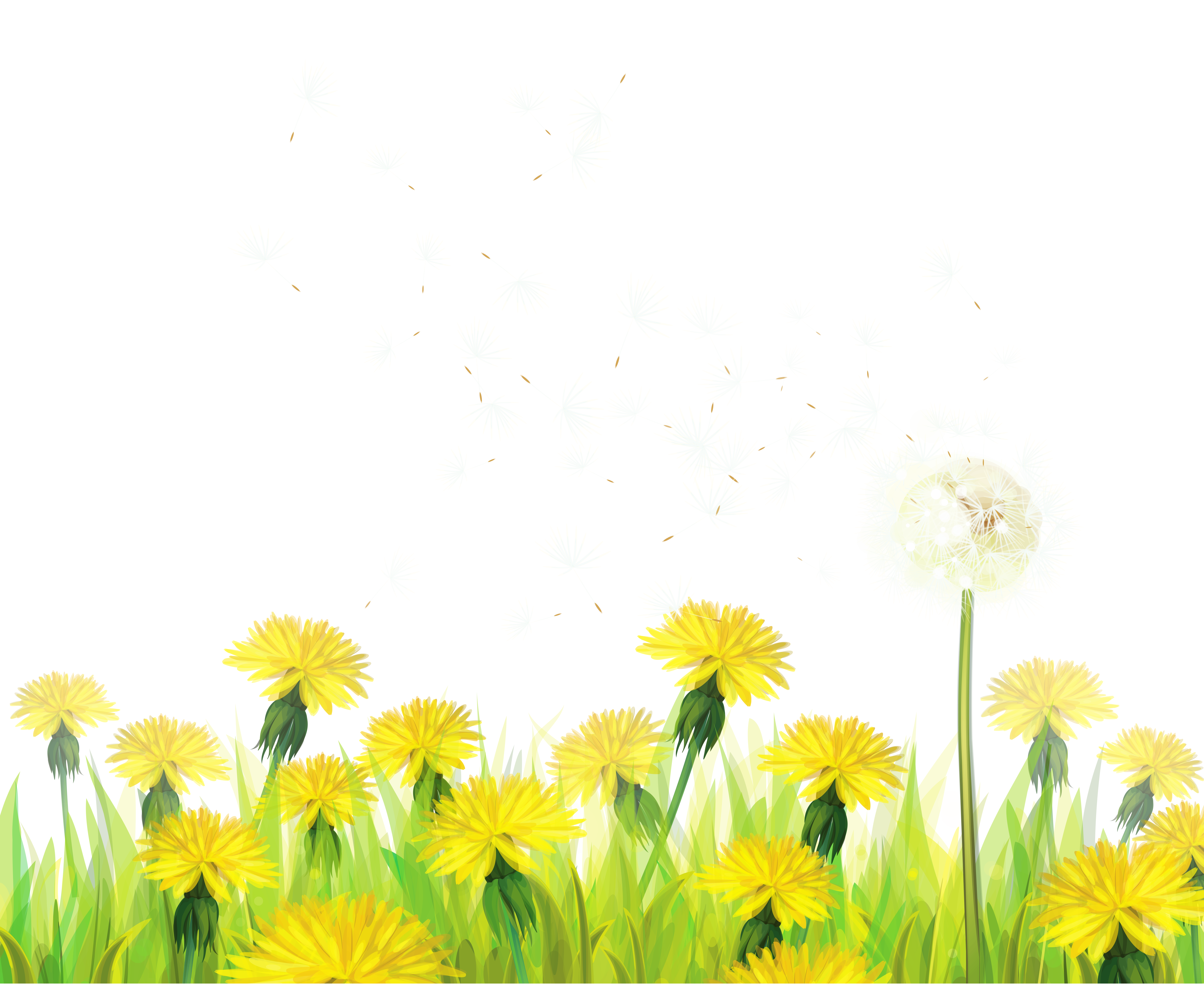 This Clipart Image: "Transparent Grass with Dandelions Clipart" is part of
