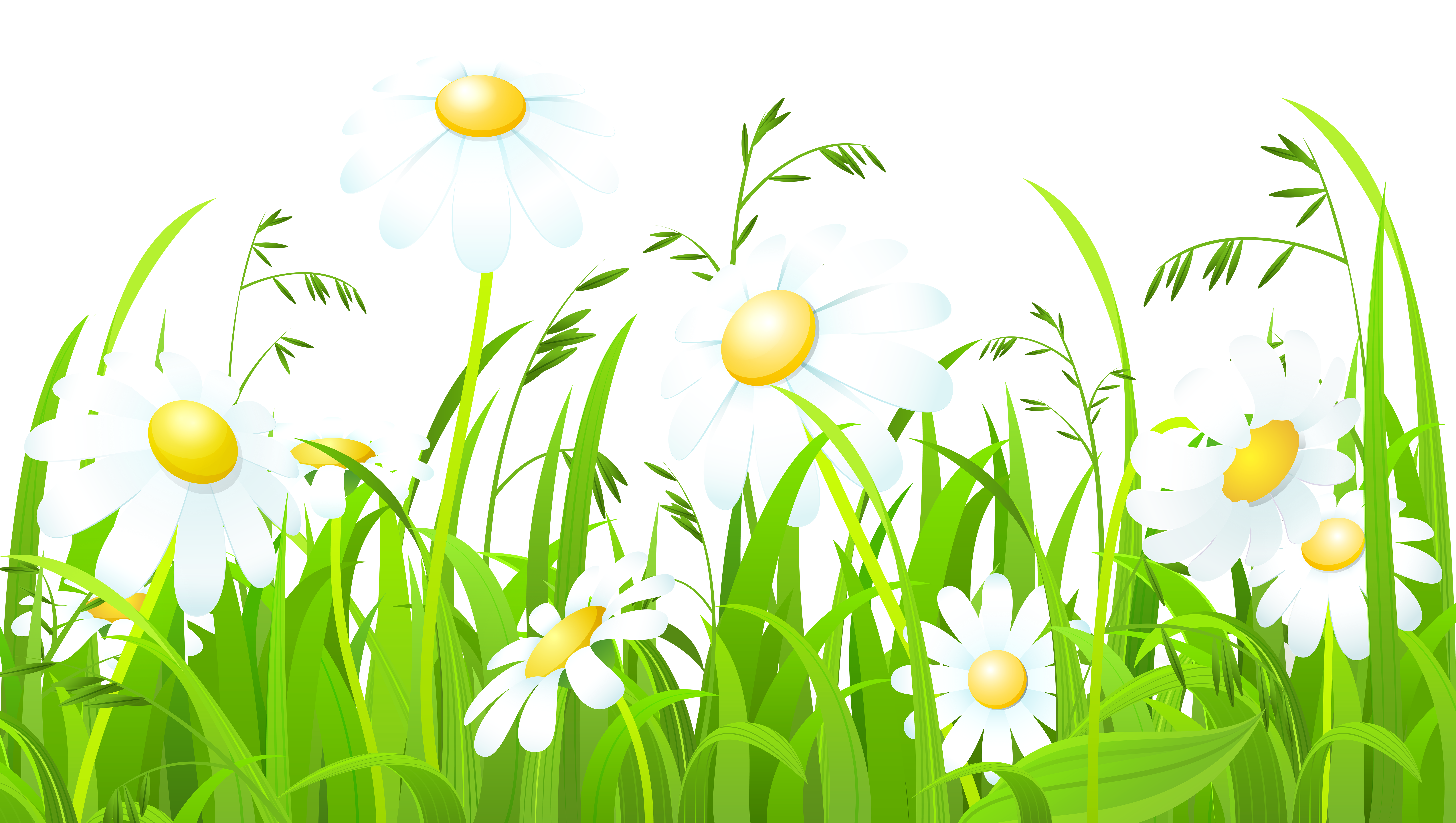 This Clipart Image: "White Flowers and Grass Transparent PNG Clip Art Image" is part of