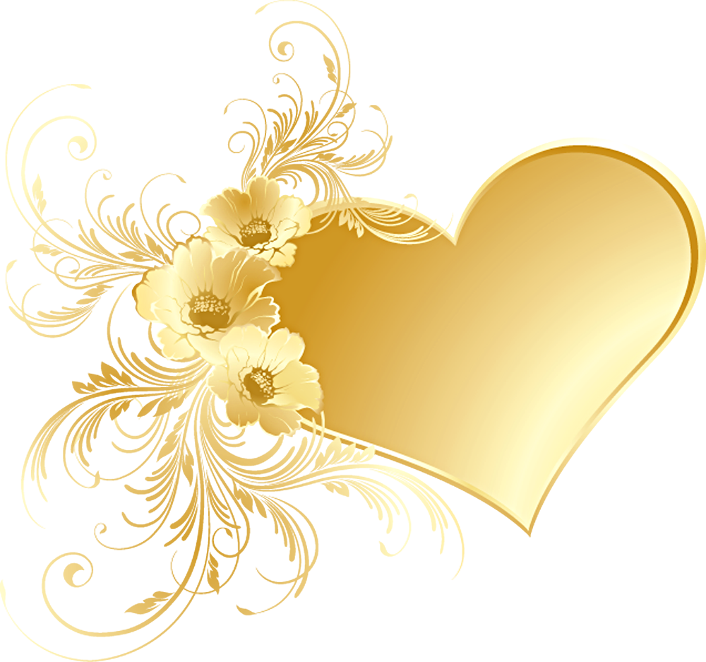 This Image: "Gold Heart with Flowers PNG Picture" is part of