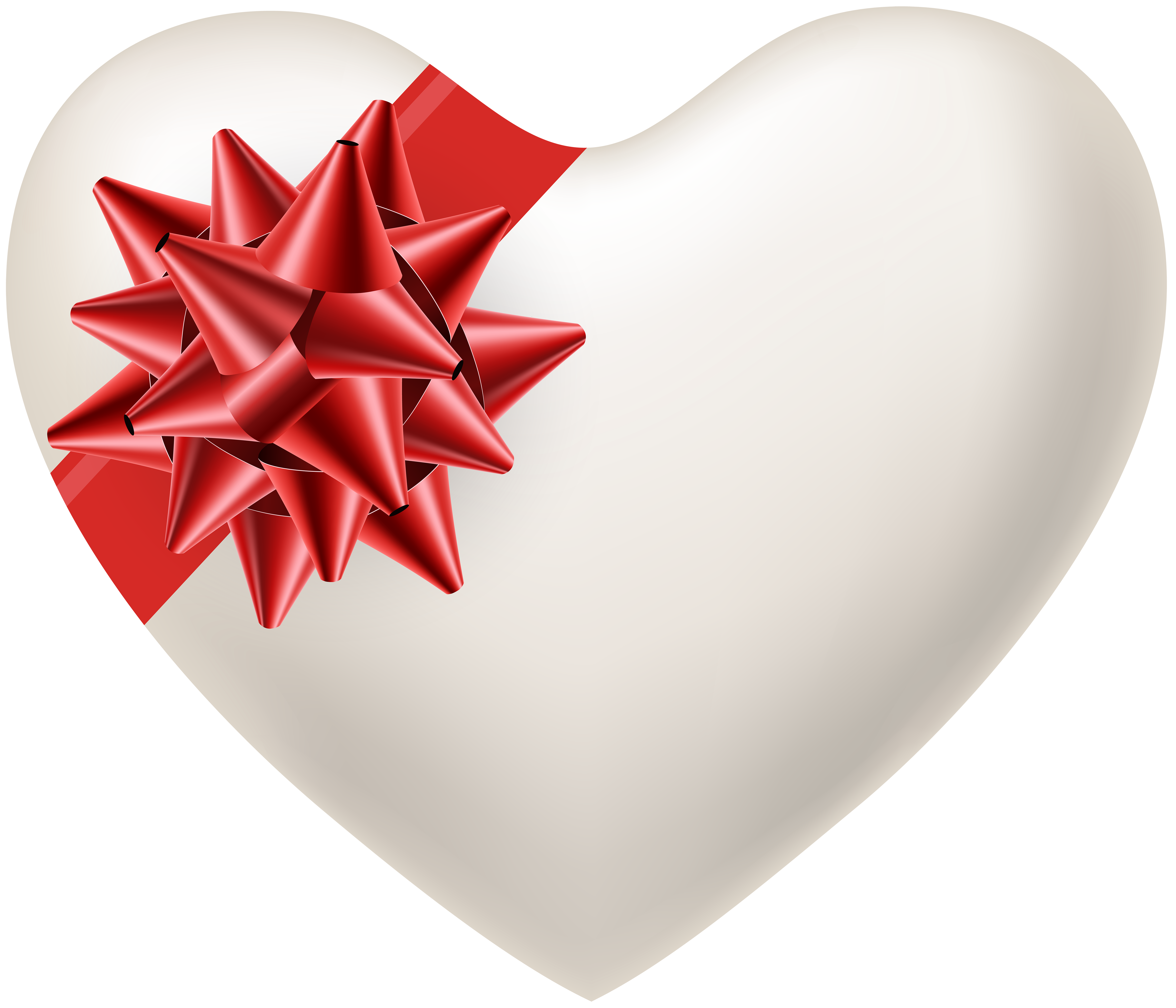 This Image: "White Heart with Red Bow Transparent PNG Image" is part of