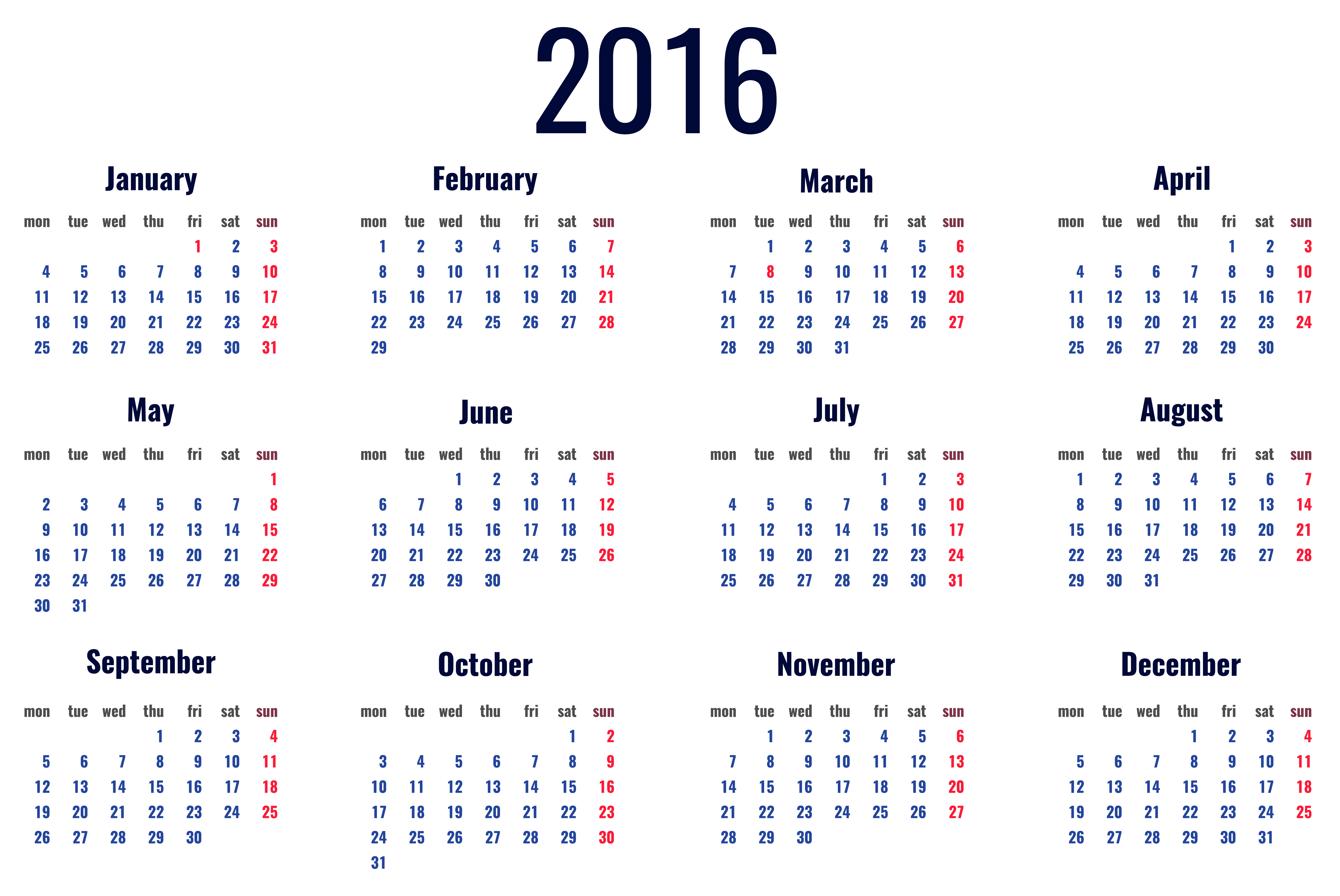 This Clipart Image: "2016 Calendar Transparent PNG Clipart Picture" is part of