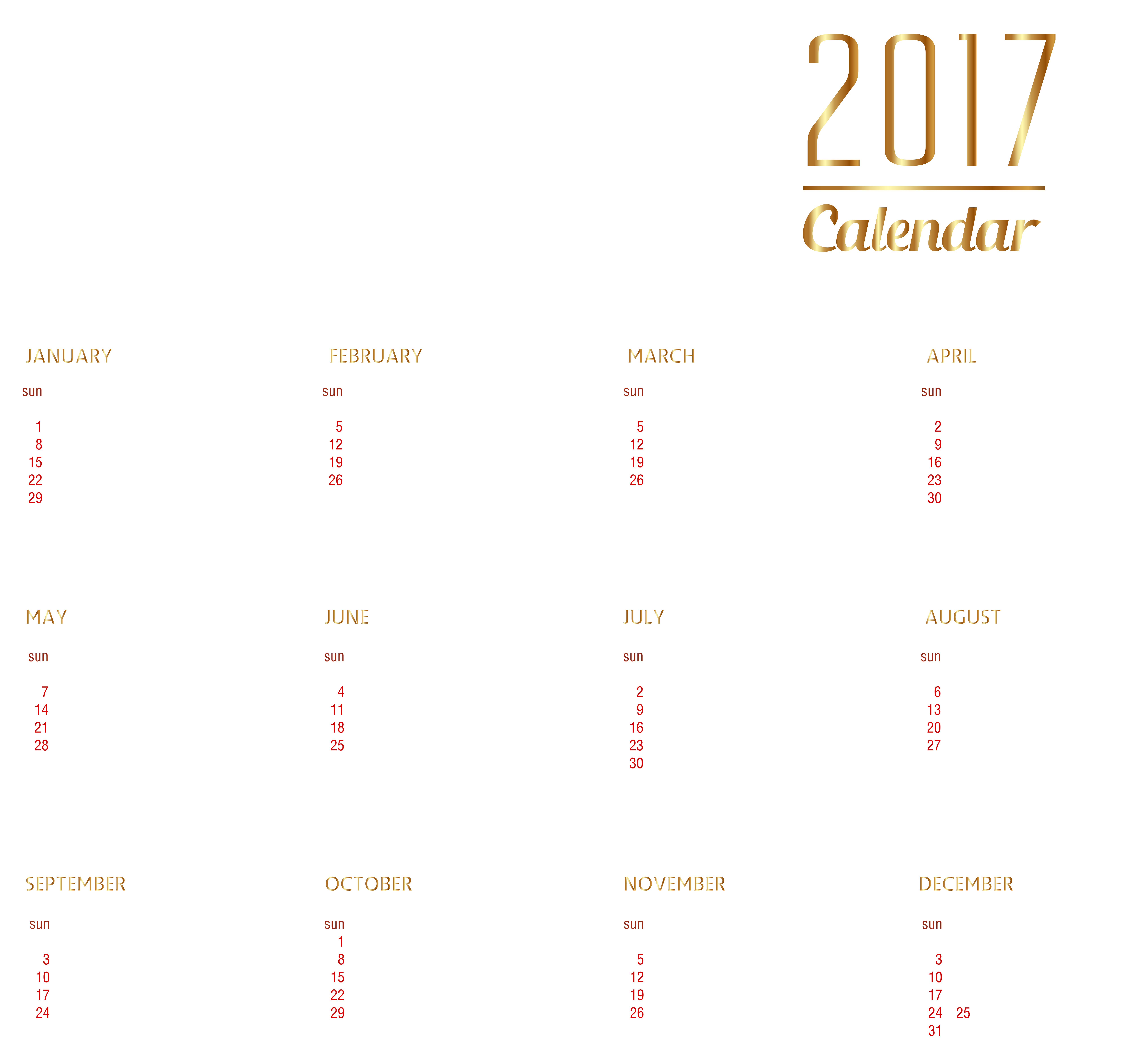 This Clipart Image: "2017 Calendar Transparent PNG Clipart Image" is part of
