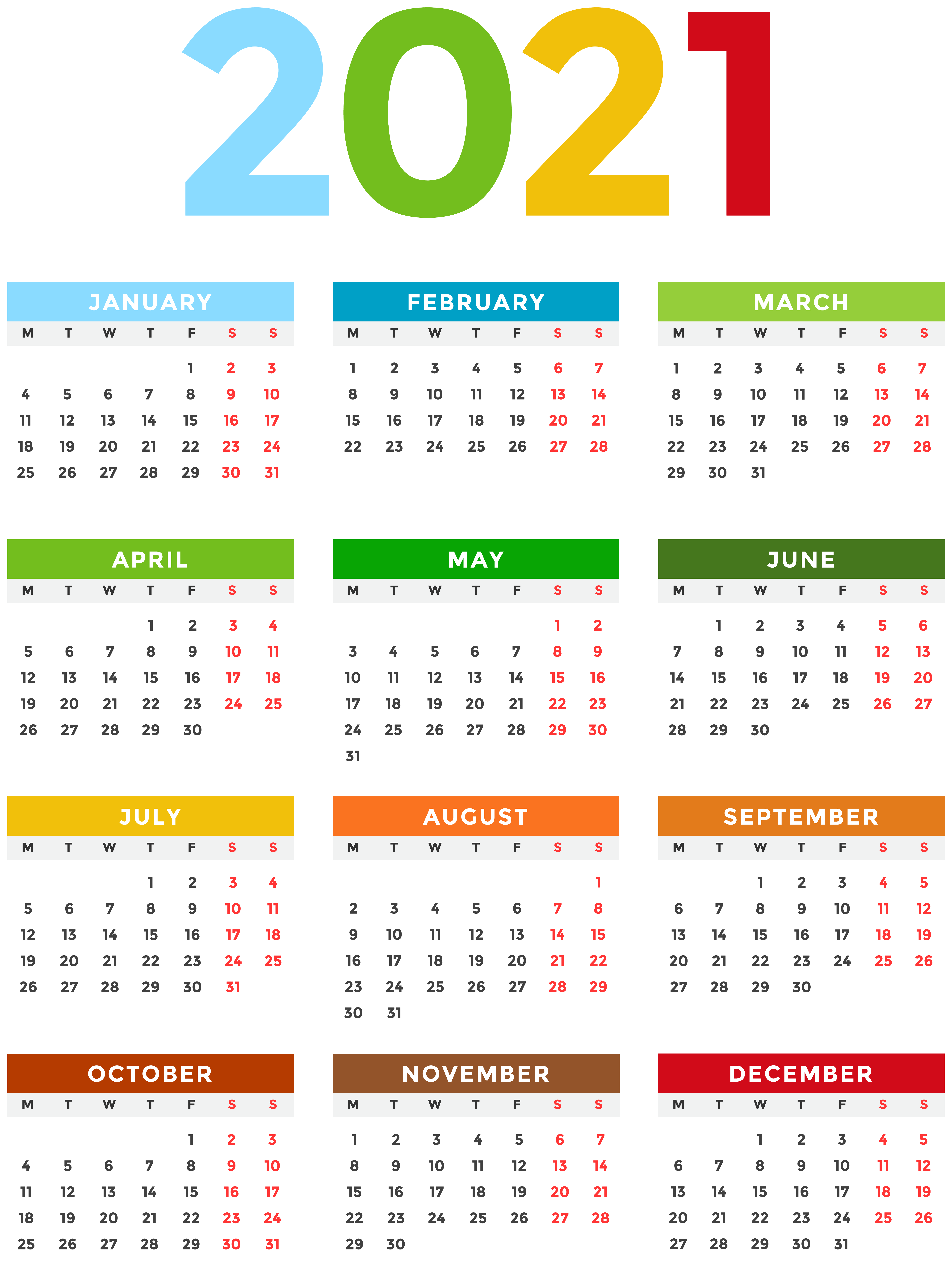 This Image: "2021 Calendar EU Colorful Transparent Image" is part of