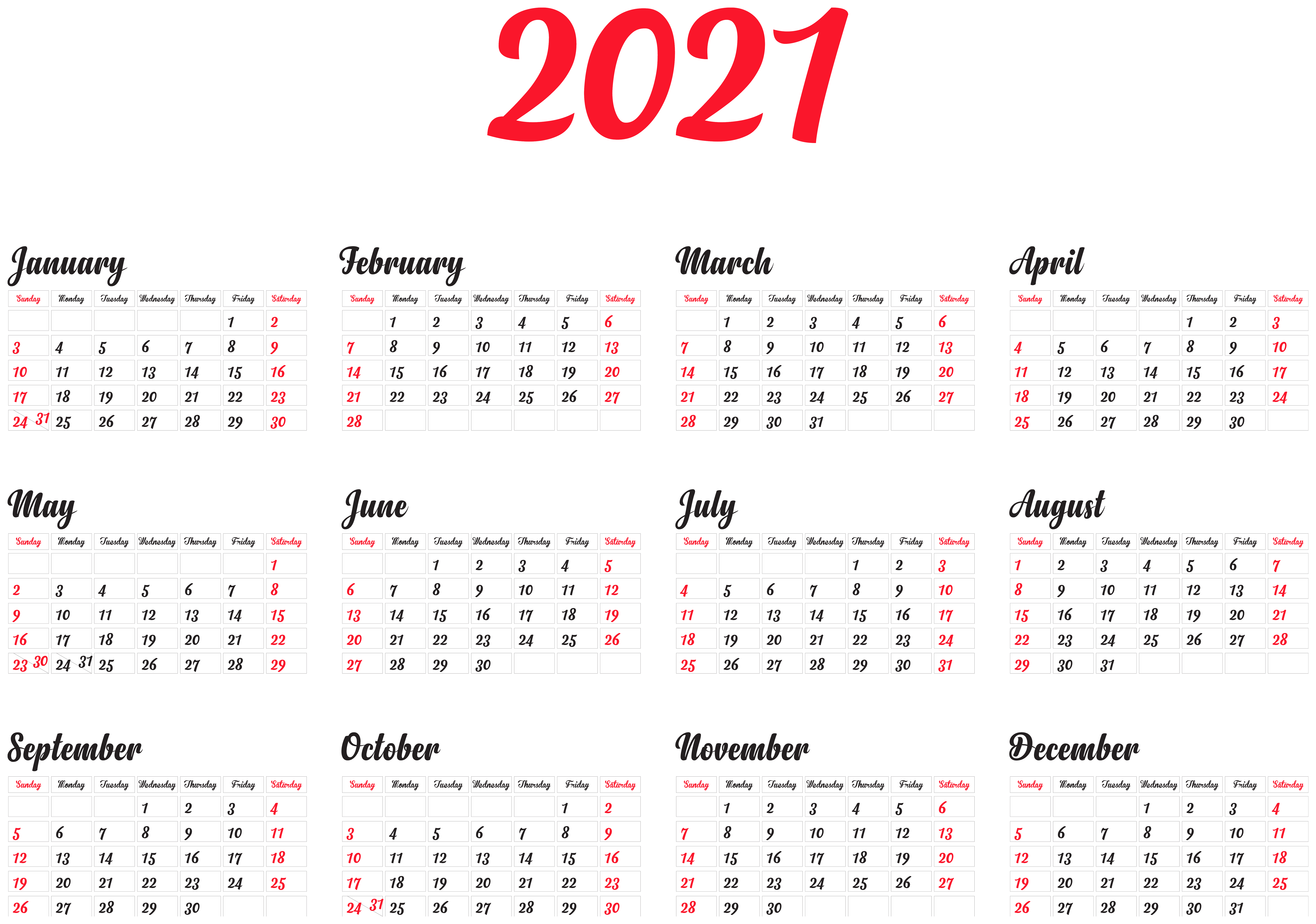 This Clipart Image: "2021 Calendar PNG Clipart" is part of