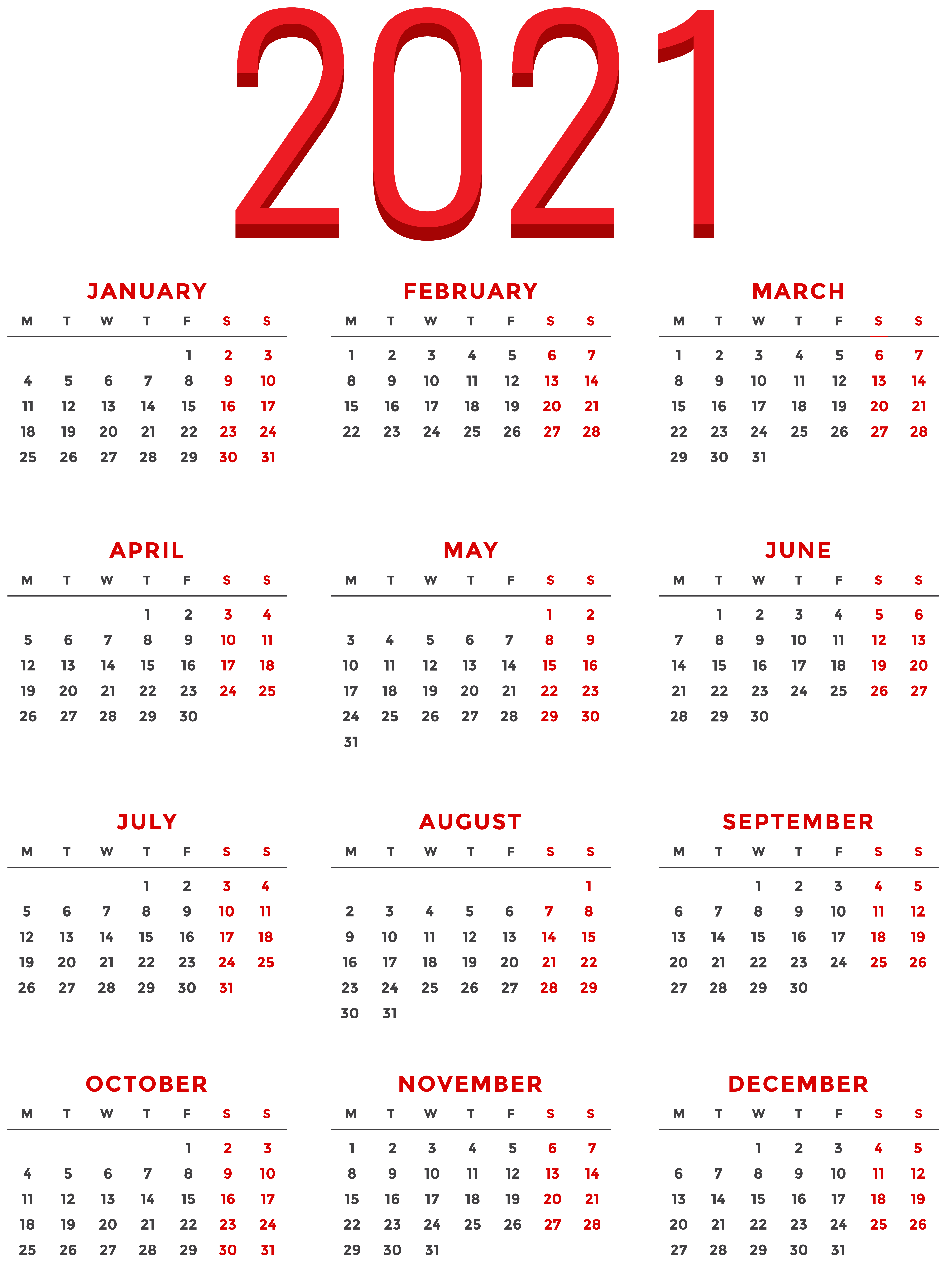 This Clipart Image: "2021 Calendar Transparent PNG Clipart" is part of