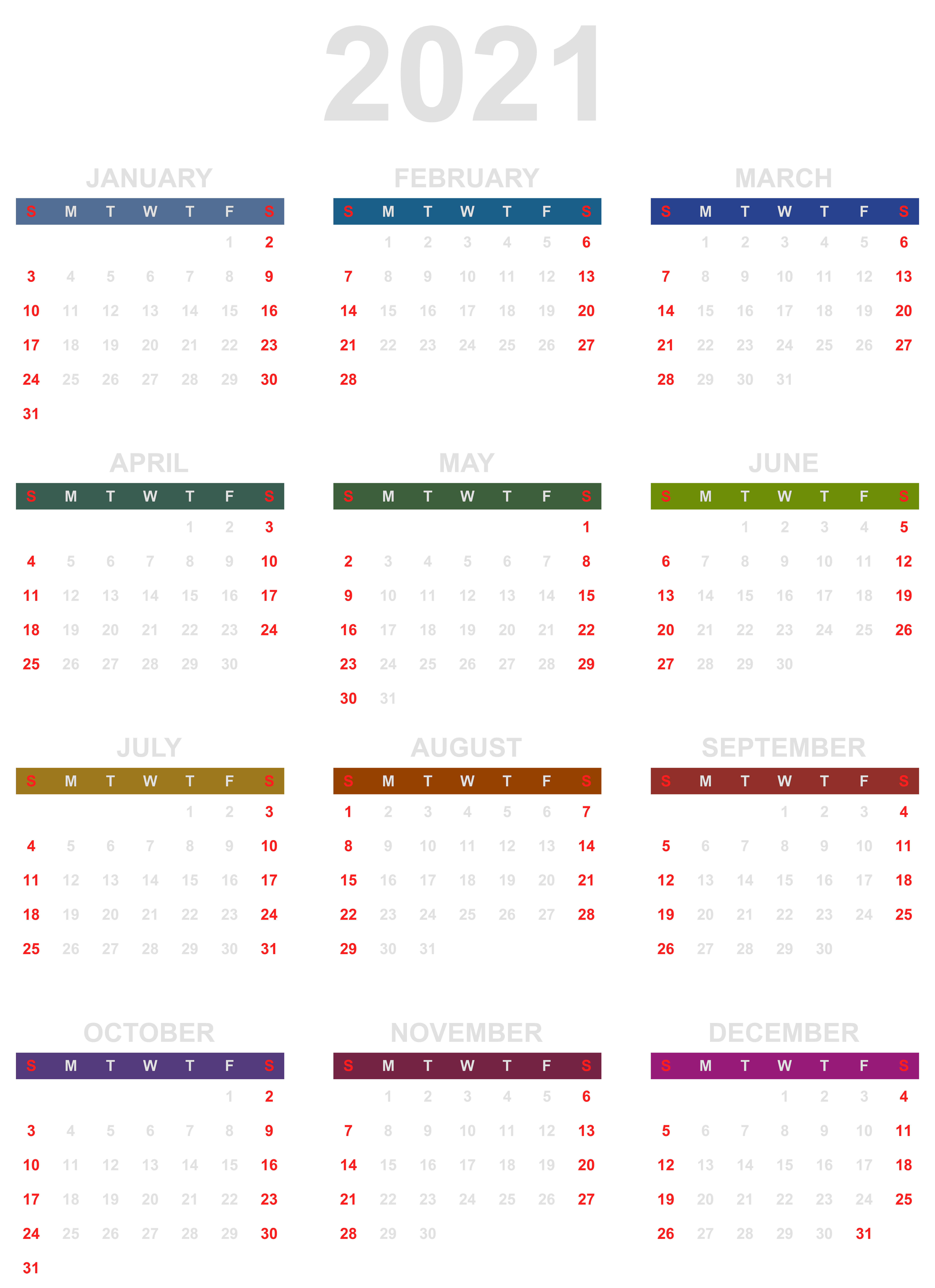 This Clipart Image: "2021 color Calendar Transparent PNG Clipart" is part of