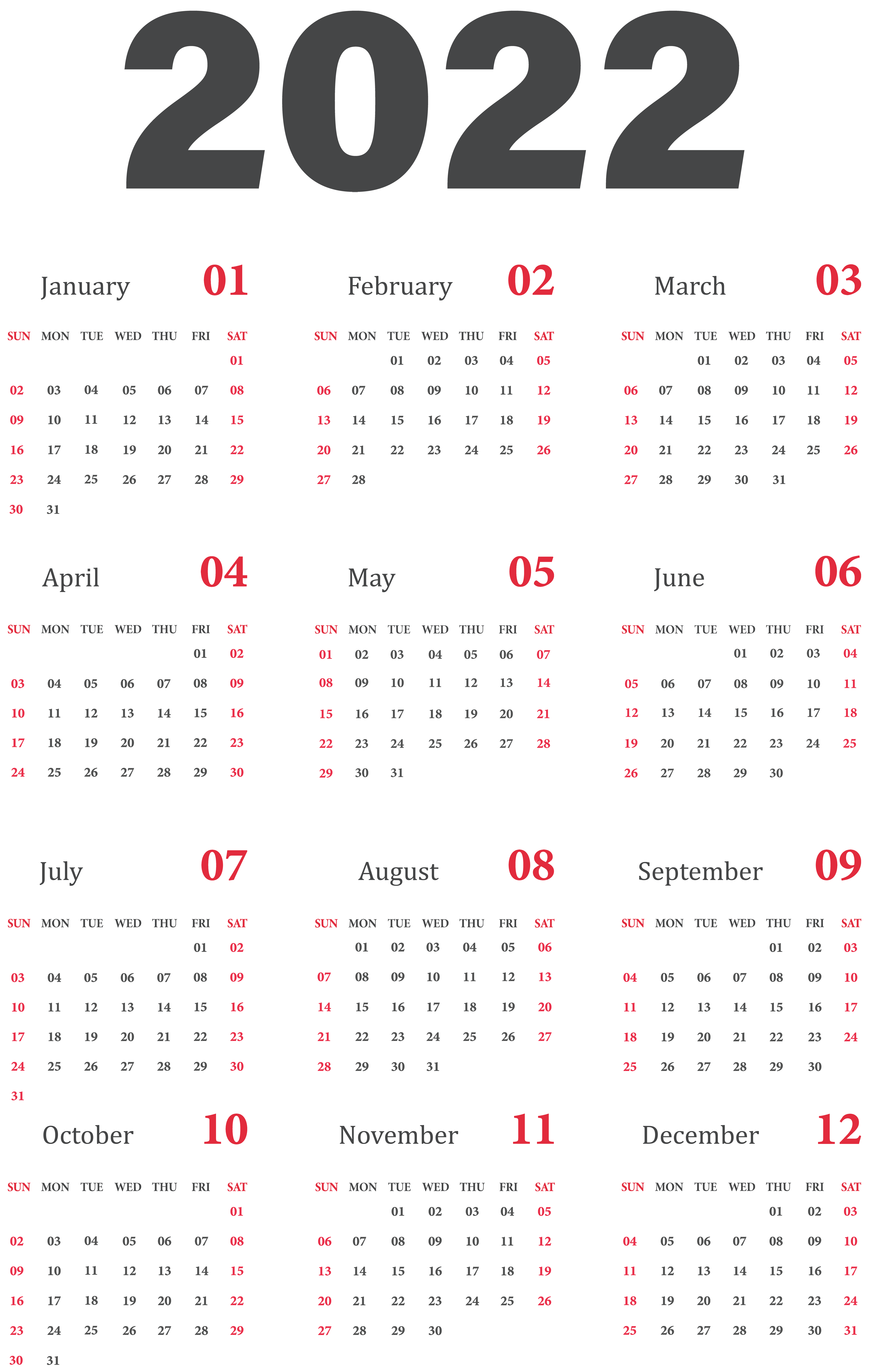This Clipart Image: "2022 Calendar US Transparent Clipart" is part of