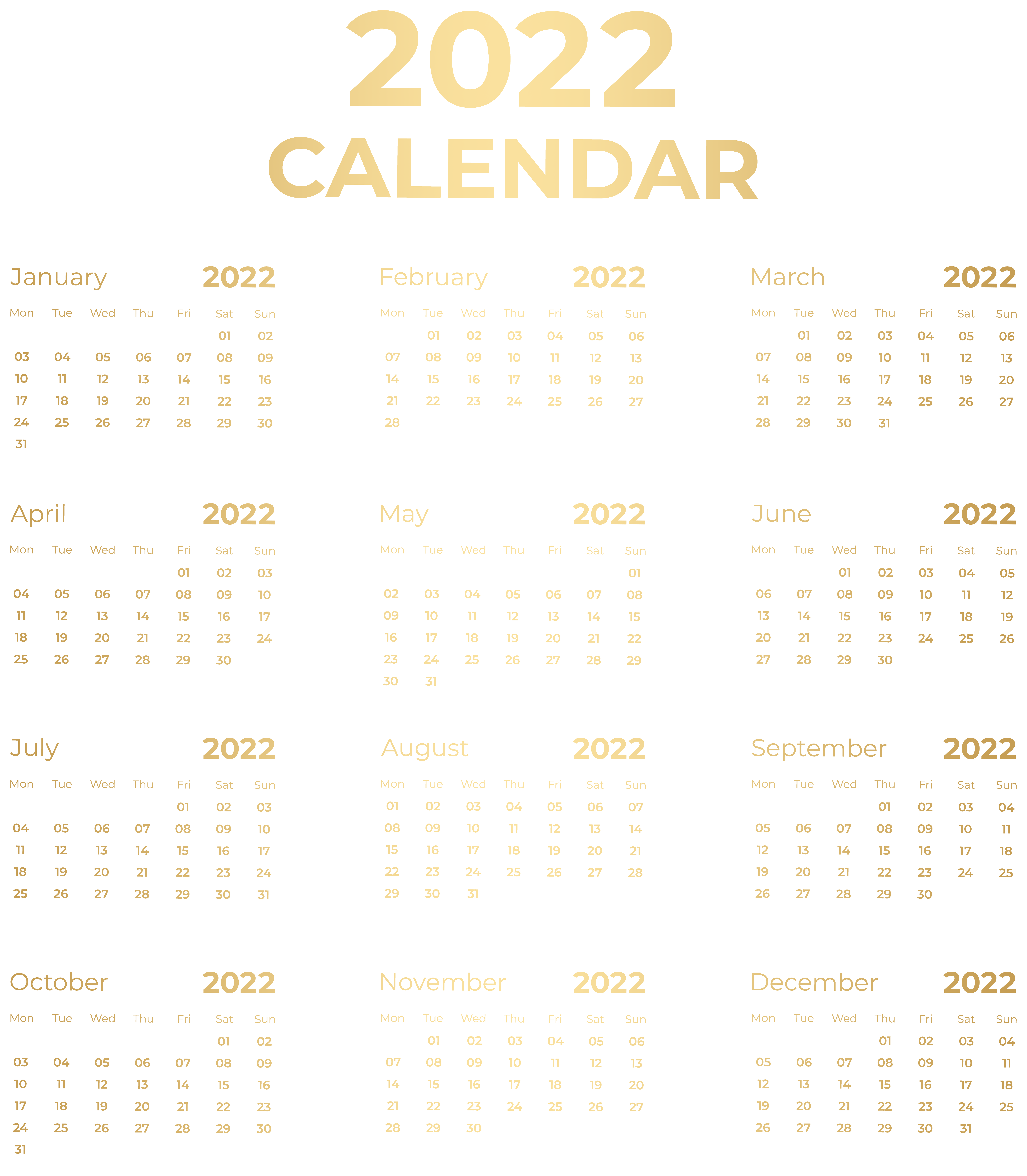 This Clipart Image: "2022 Gold Calendar PNG Clipart" is part of