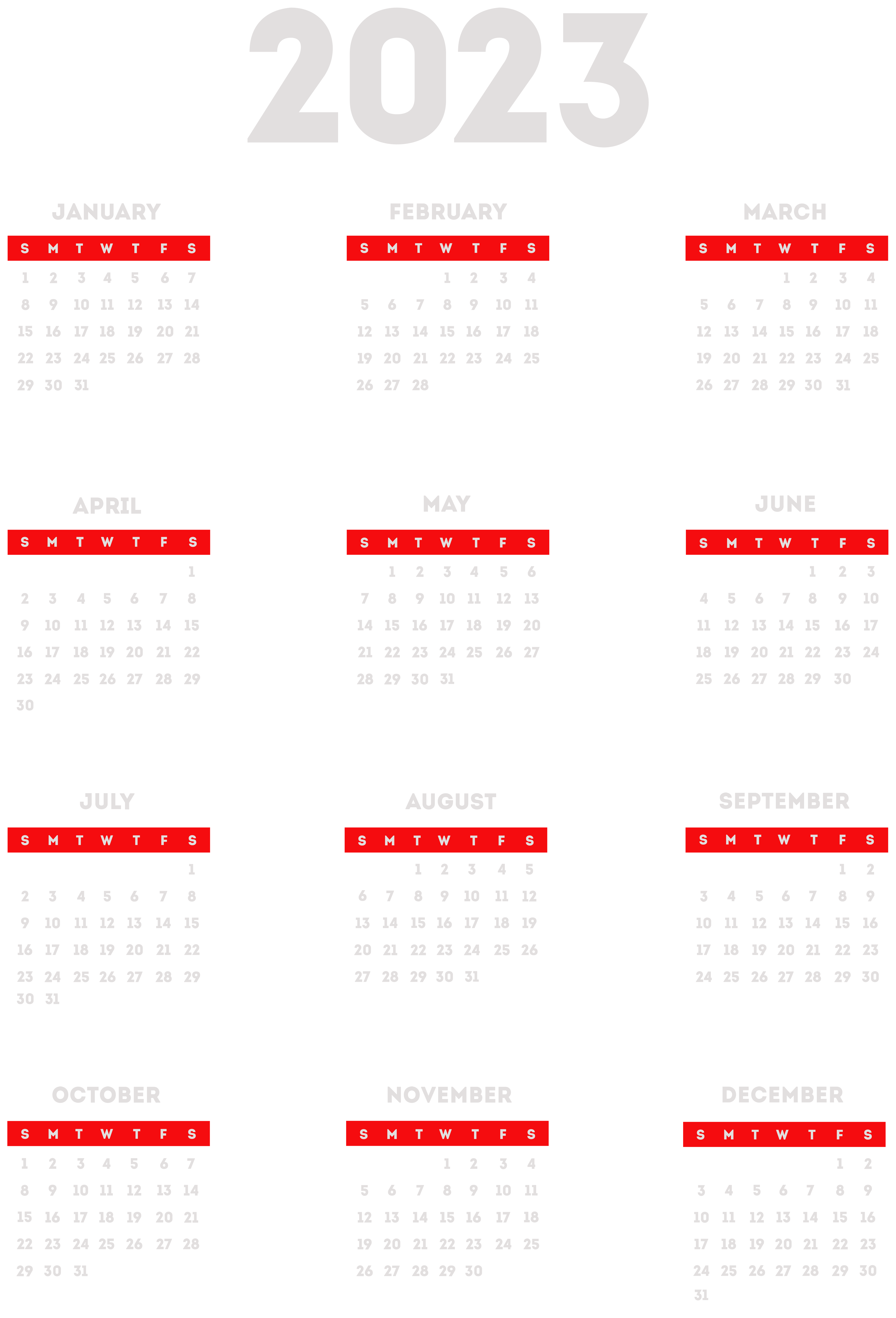 This Clipart Image: "2023 Calendar Transparent White PNG Clipart" is part of