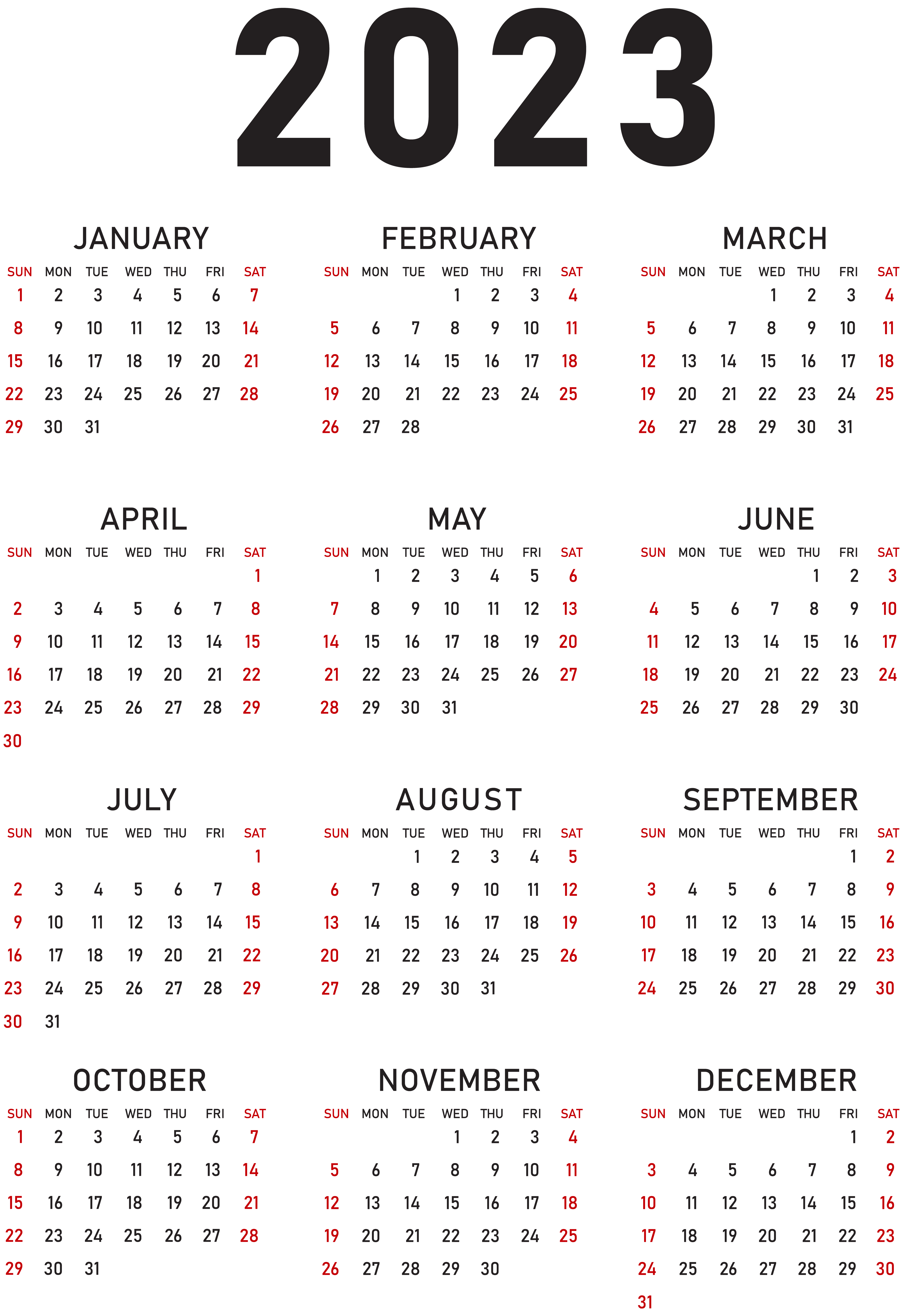 This Clipart Image: "2023 Calendar US PNG Transparent Clipart" is part of