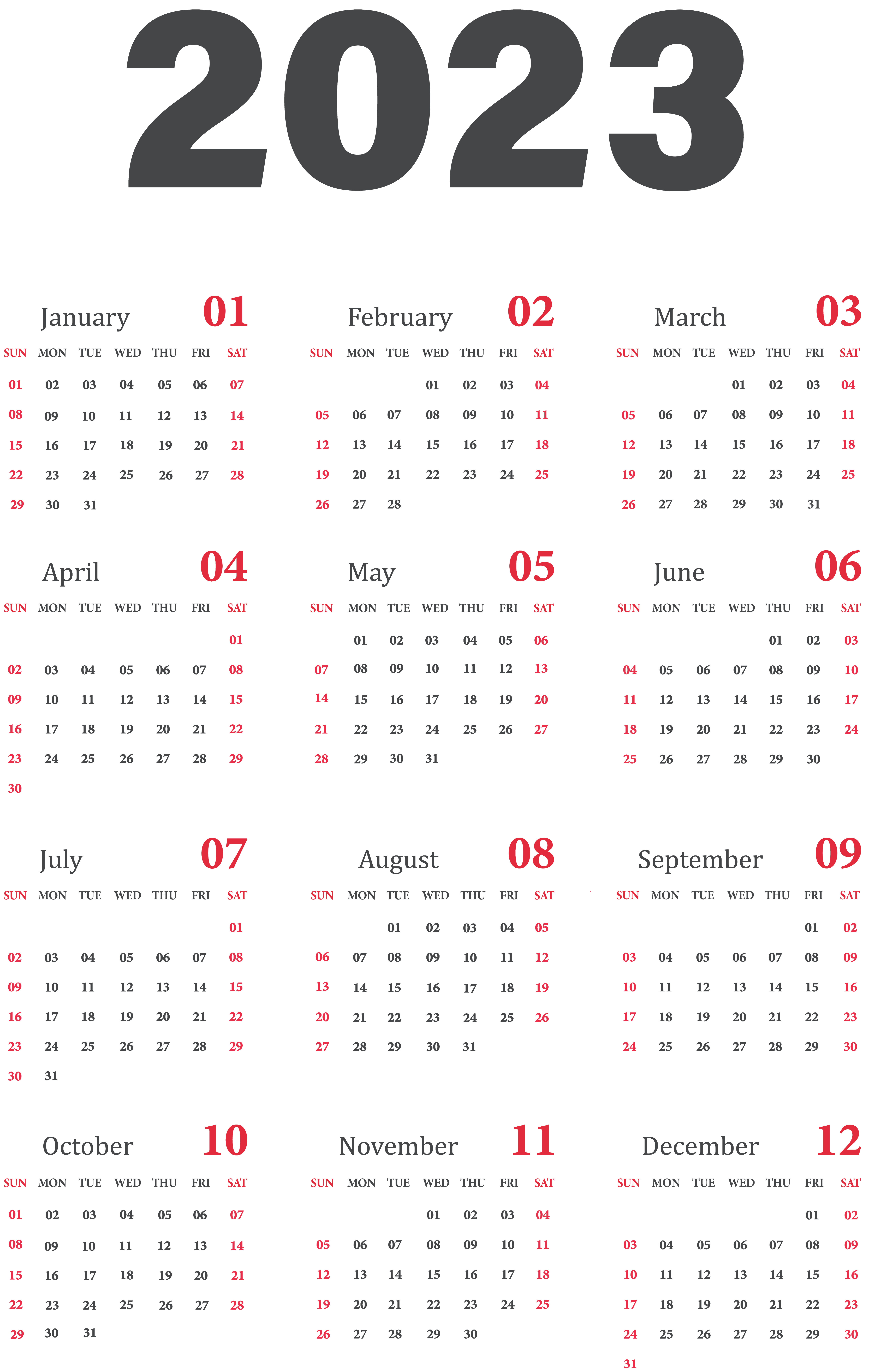 This Clipart Image: "2023 Calendar US Transparent Clipart" is part of