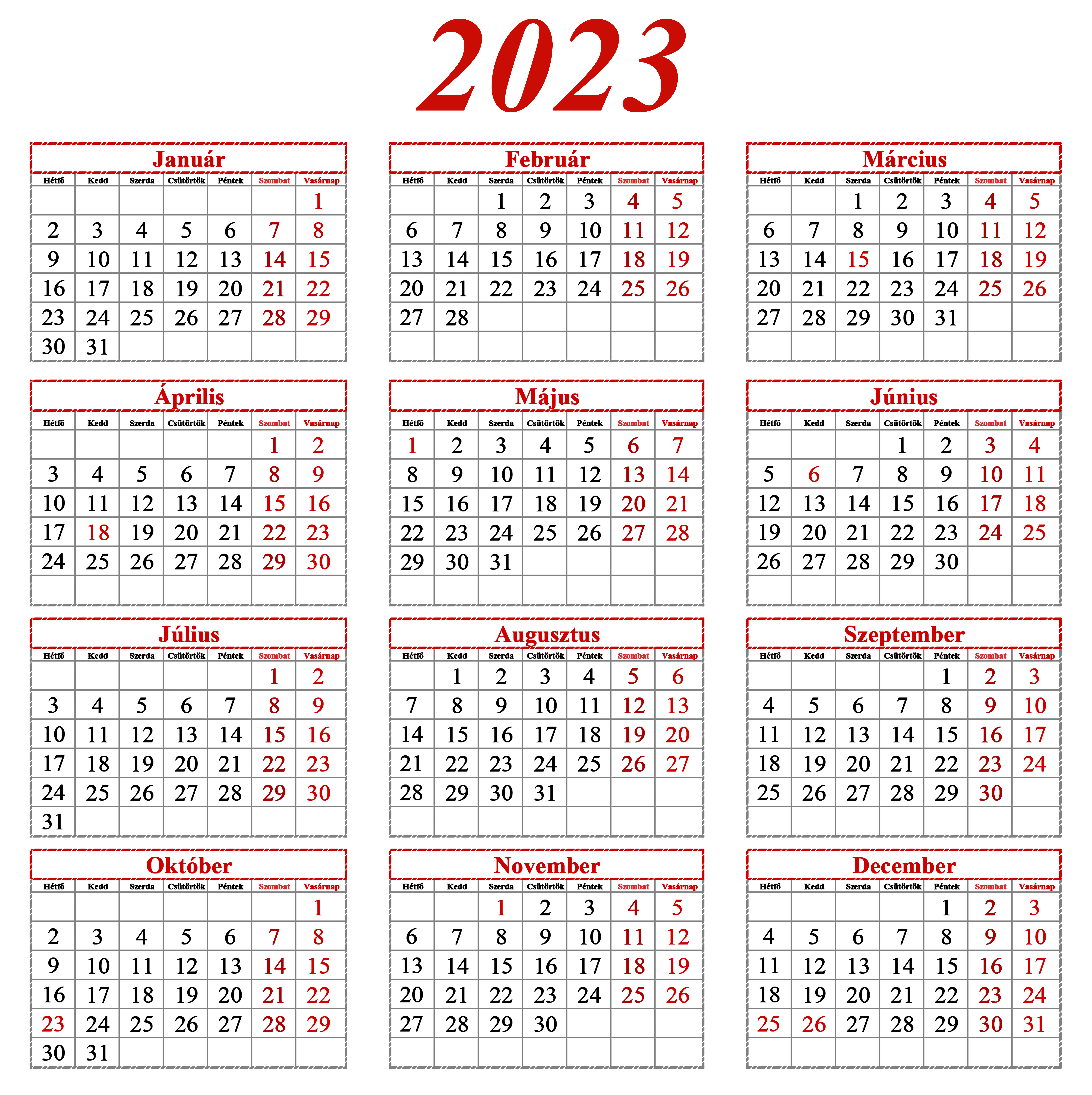 This Clipart Image: "2023 Hungarian Calendar Transparent PNG Clipart" is part of