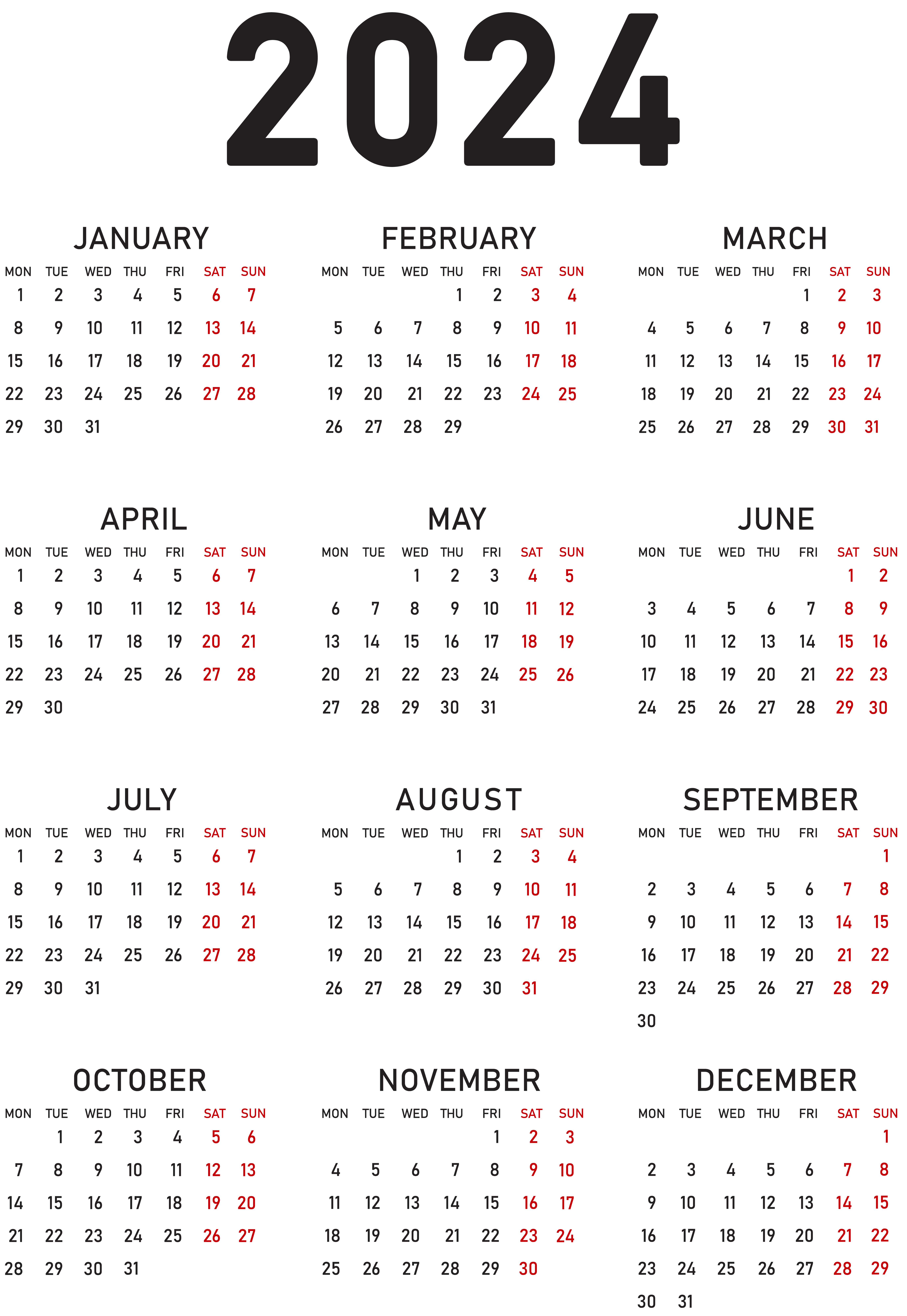 This Clipart Image: "2024 Calendar PNG Transparent Clipart" is part of