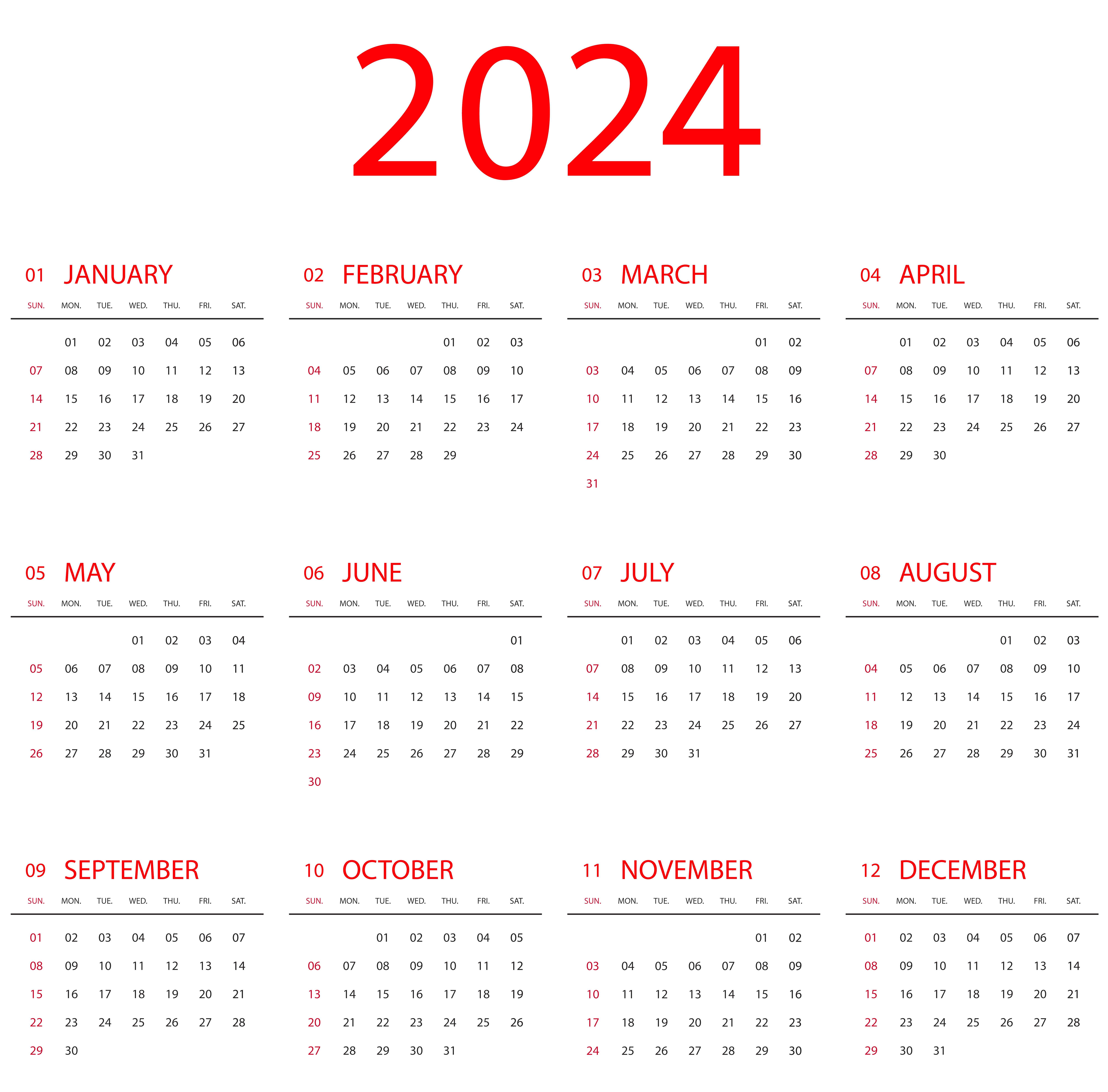 This Clipart Image: "2024 Calendar US PNG Transparent Clipart" is part of