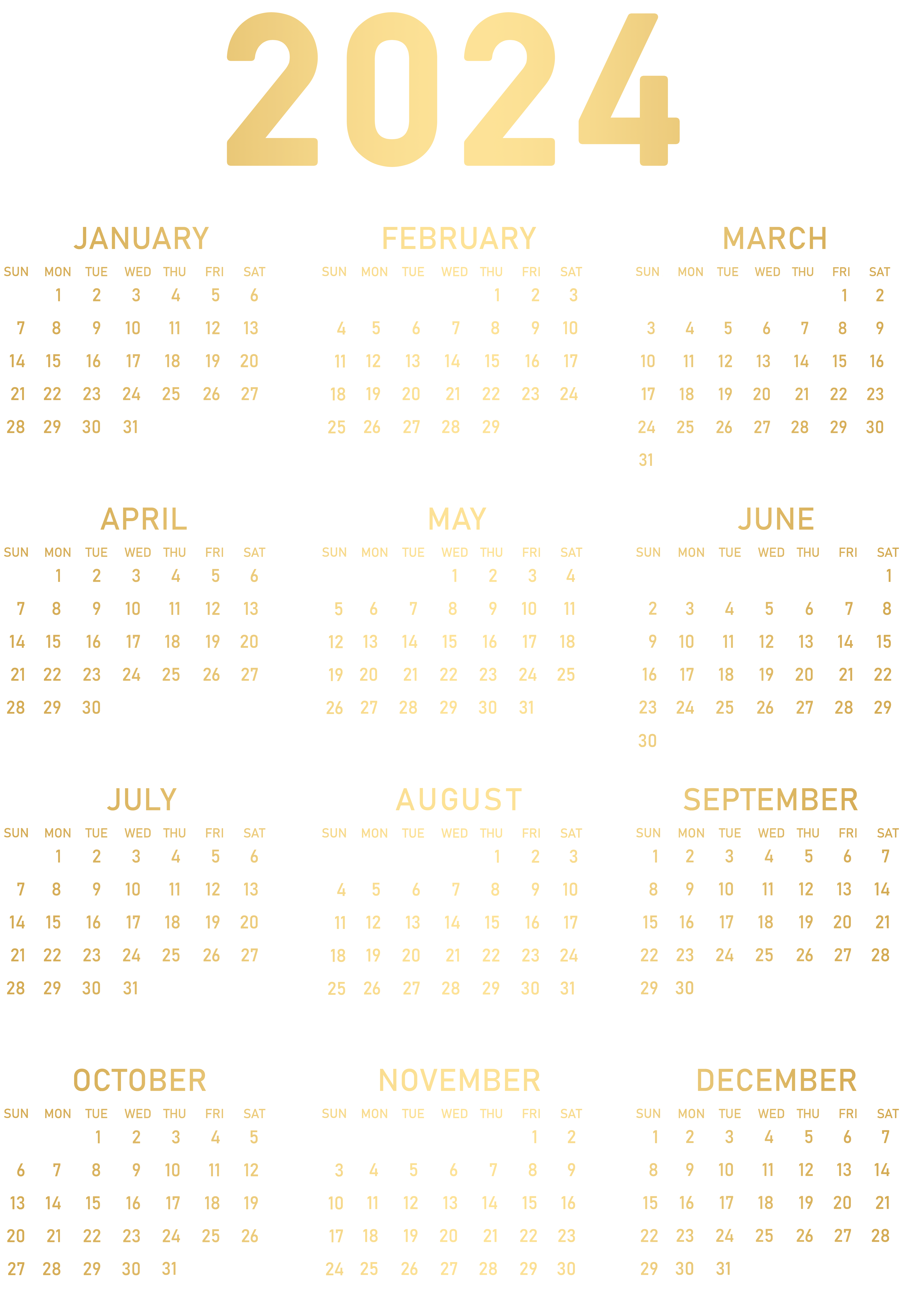 This Clipart Image: "2024 Gold Calendar US PNG Clipart" is part of
