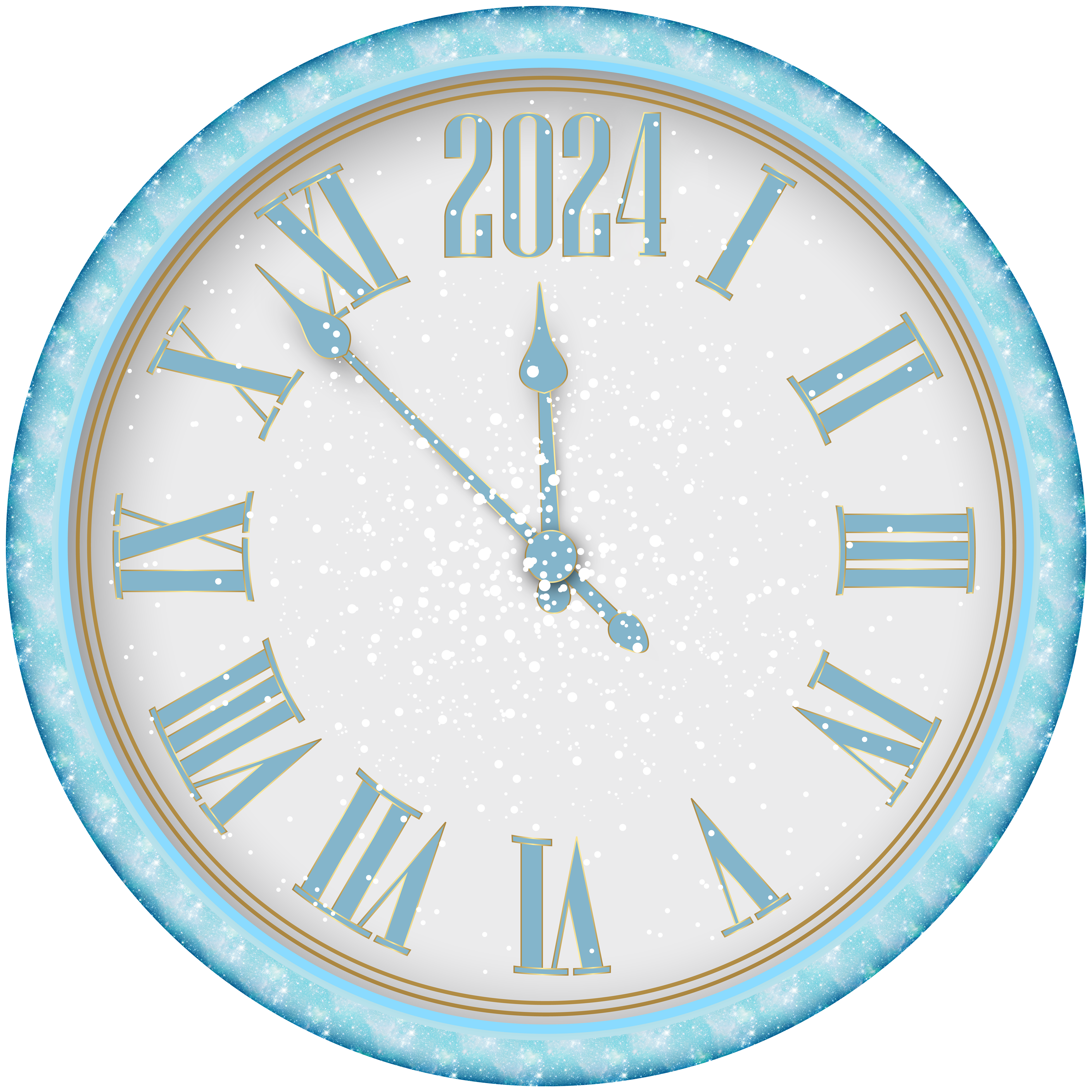 This Clipart Image: "2024 New Year Snowy Clock PNG Clipart" is part of