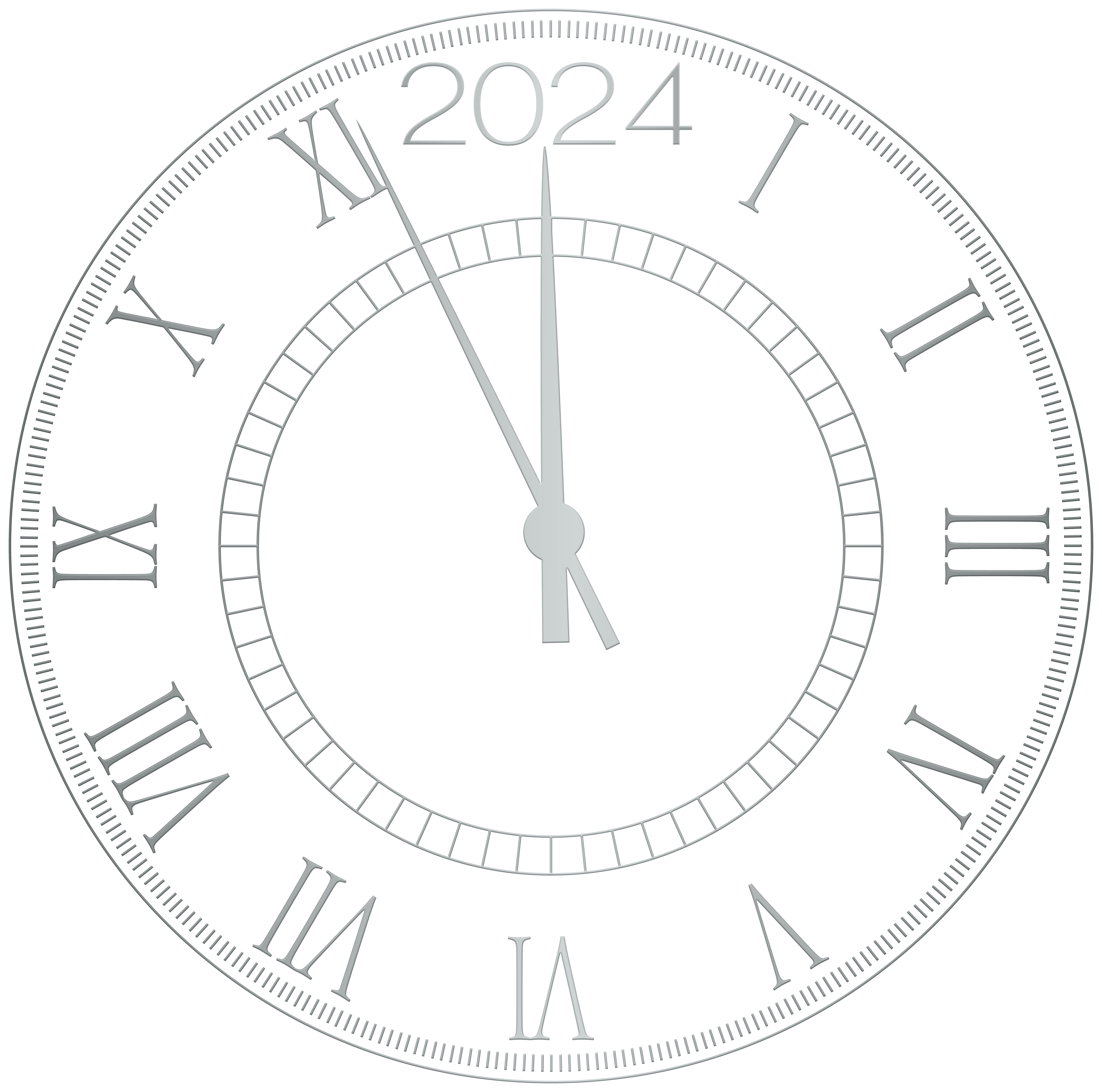 This Clipart Image: "2024 Silver New Year Clock Clipart" is part of