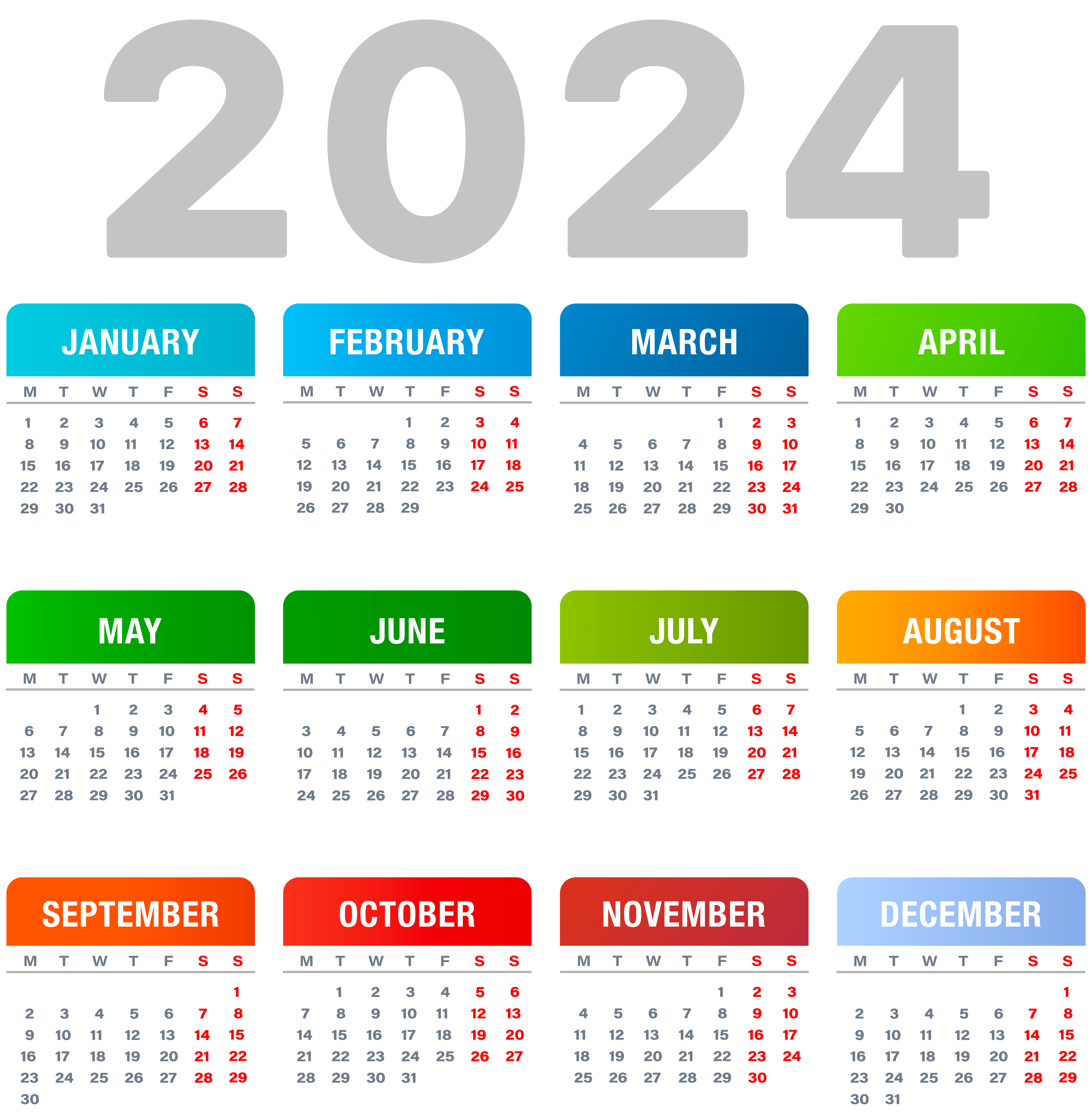 This Clipart Image: "2024 Transparent Calendar PNG Clipart" is part of