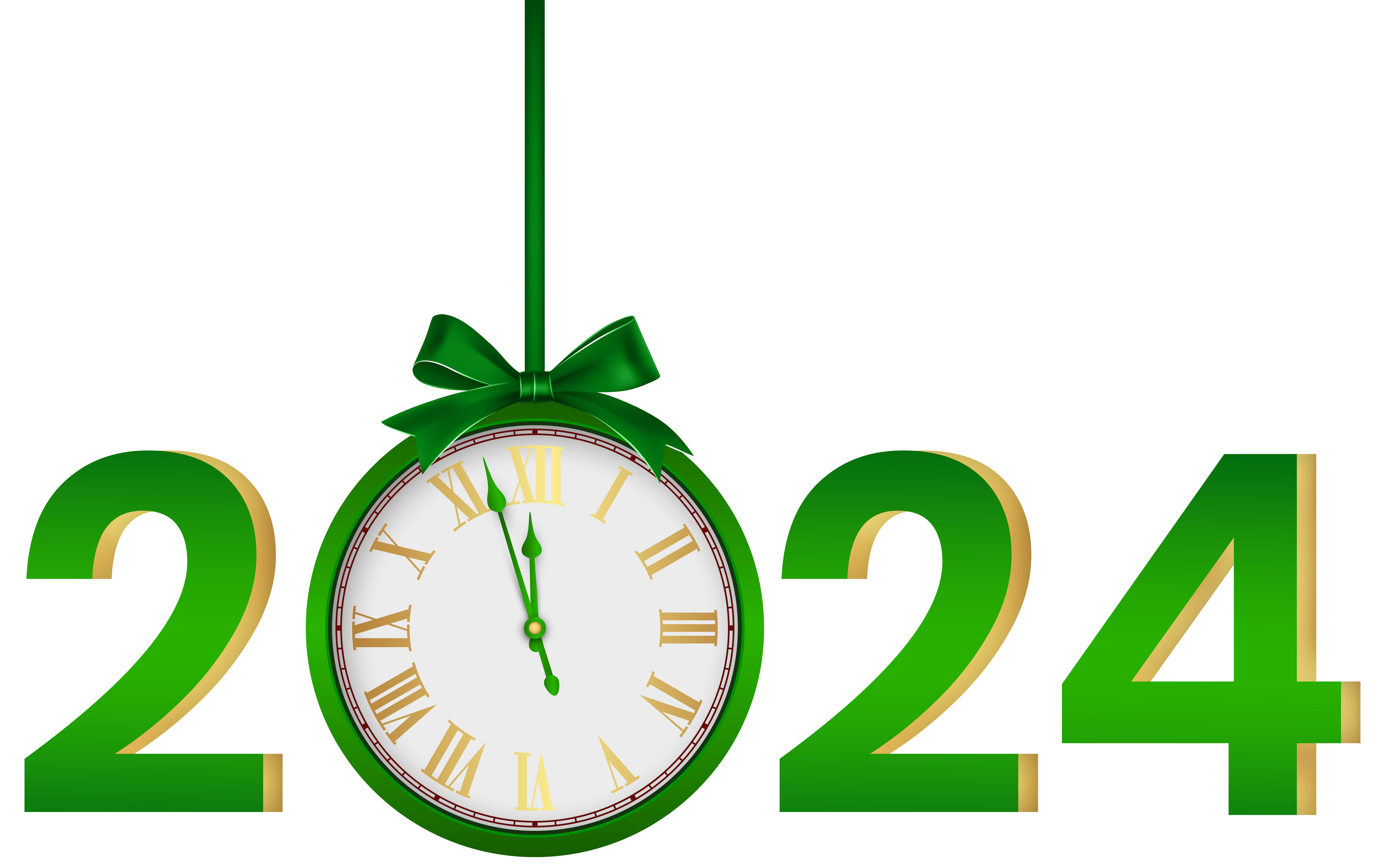 This Clipart Image: "2024 with Clock Green PNG Clipart" is part of