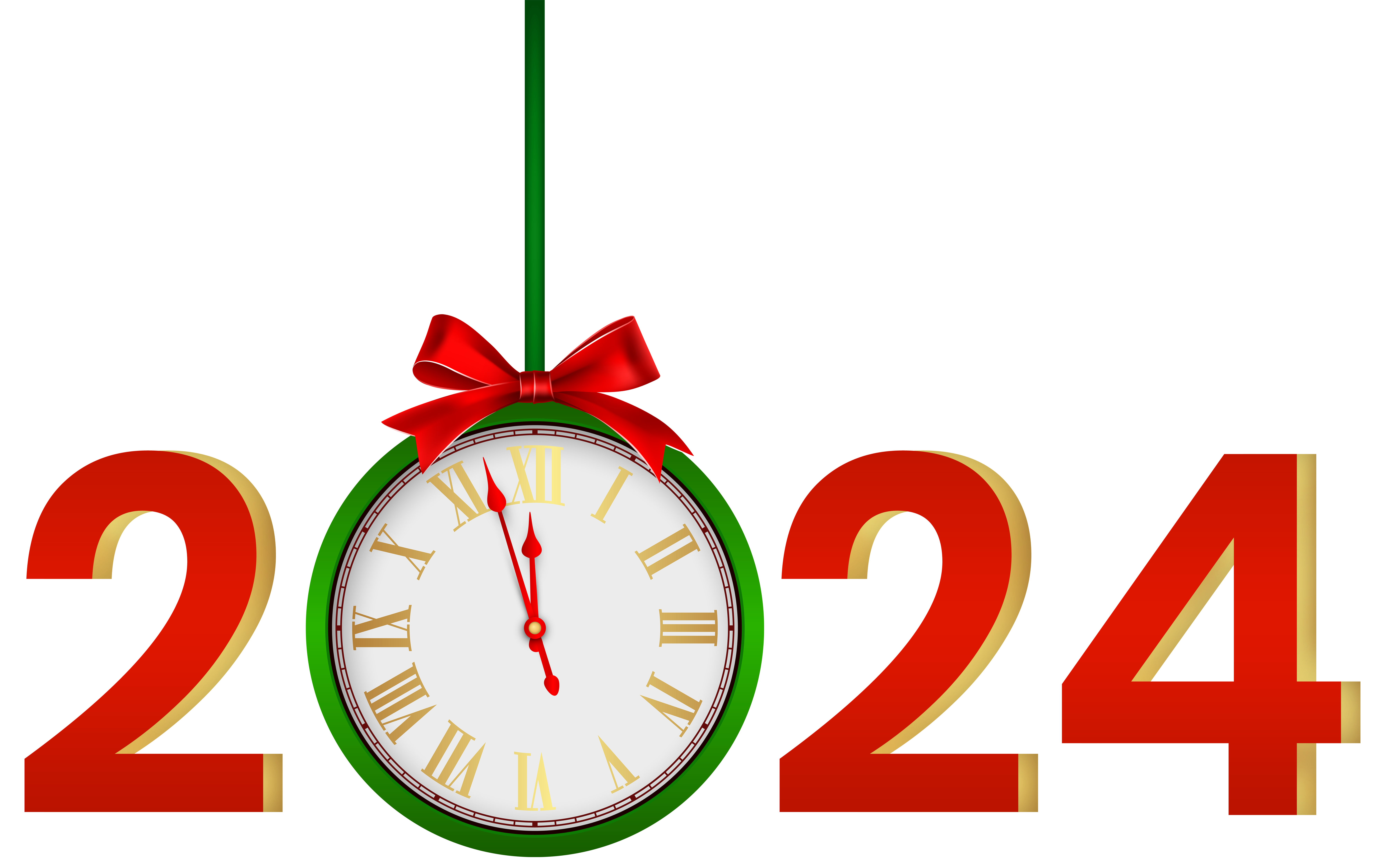 This Clipart Image: "2024 with Clock Red Green PNG Clipart" is part of