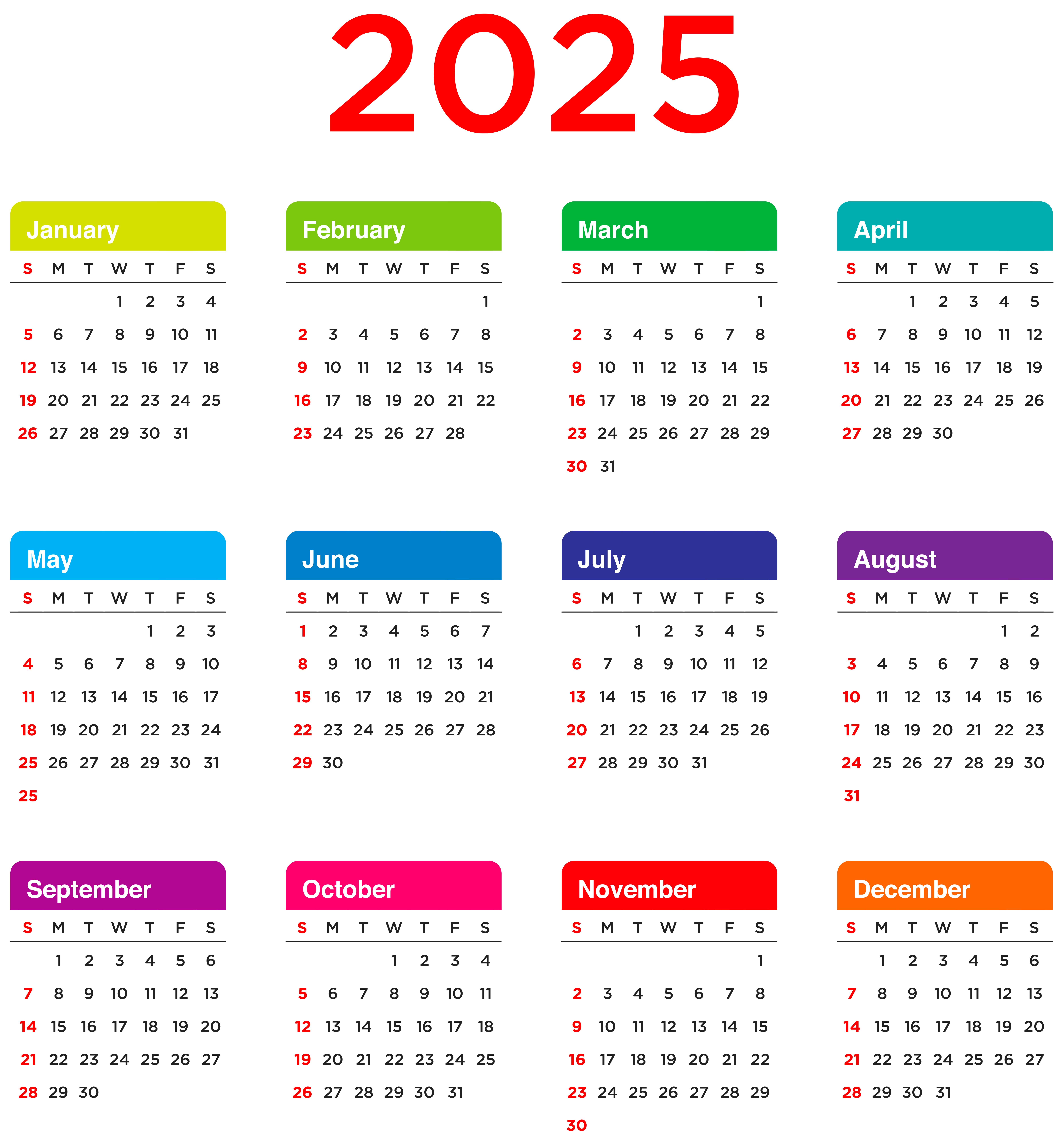 This Clipart Image: "2025 Calendar Transparent PNG Clip Art" is part of
