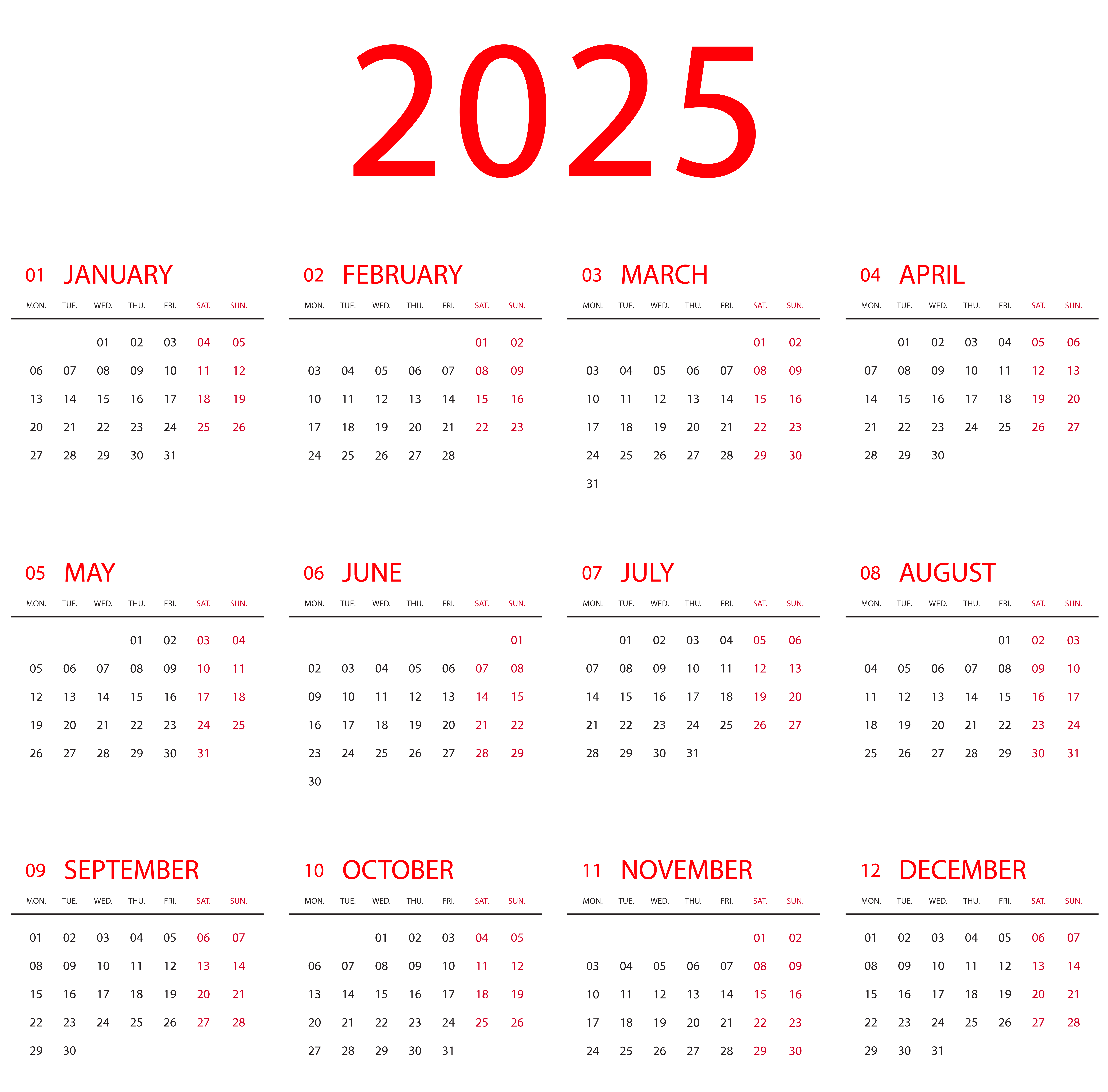This Clipart Image: "2025 Calendar Transparent PNG Clipart" is part of