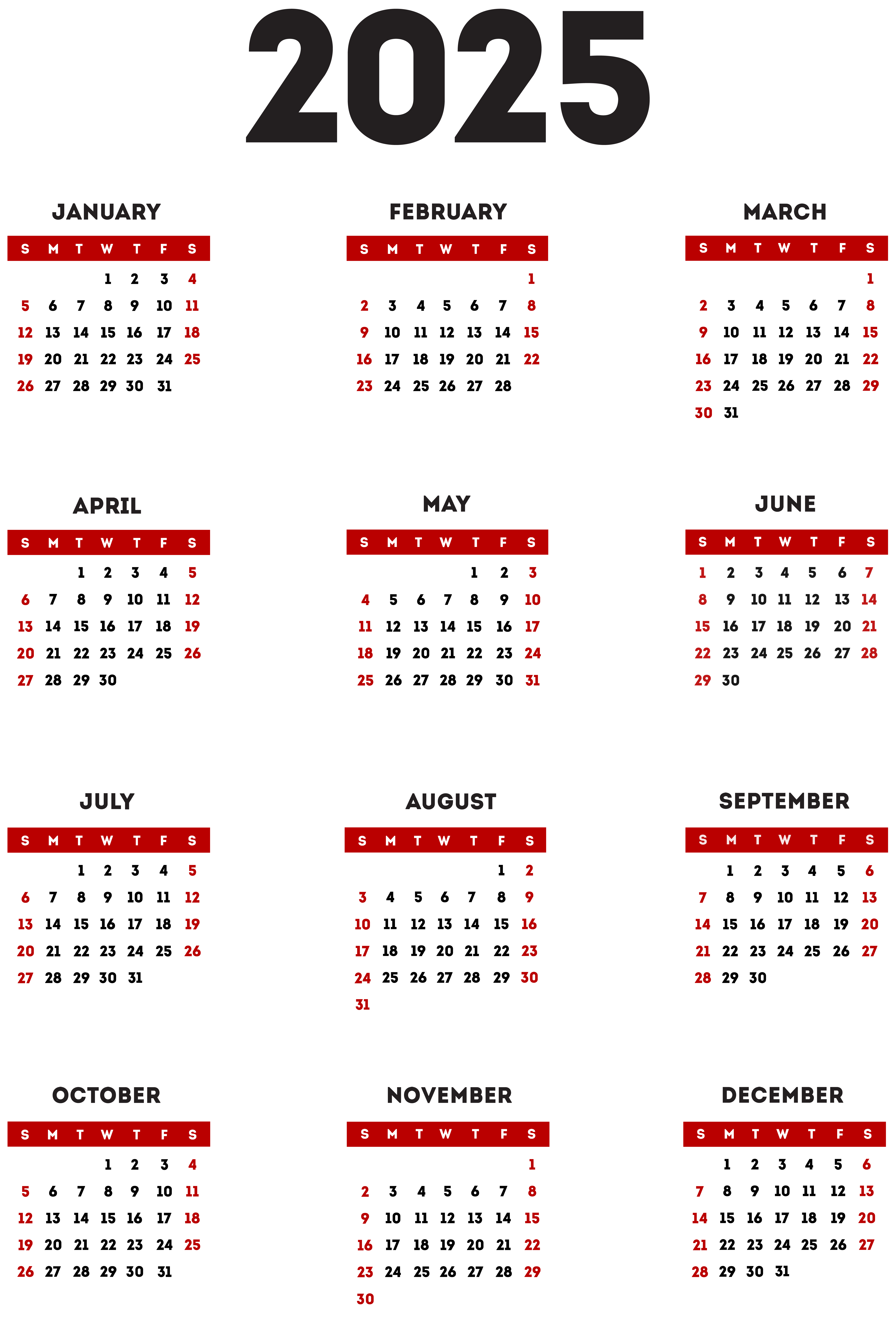 This Clipart Image: "2025 Calendar Transparent Red Black PNG Clipartk PNG Clipart" is part of
