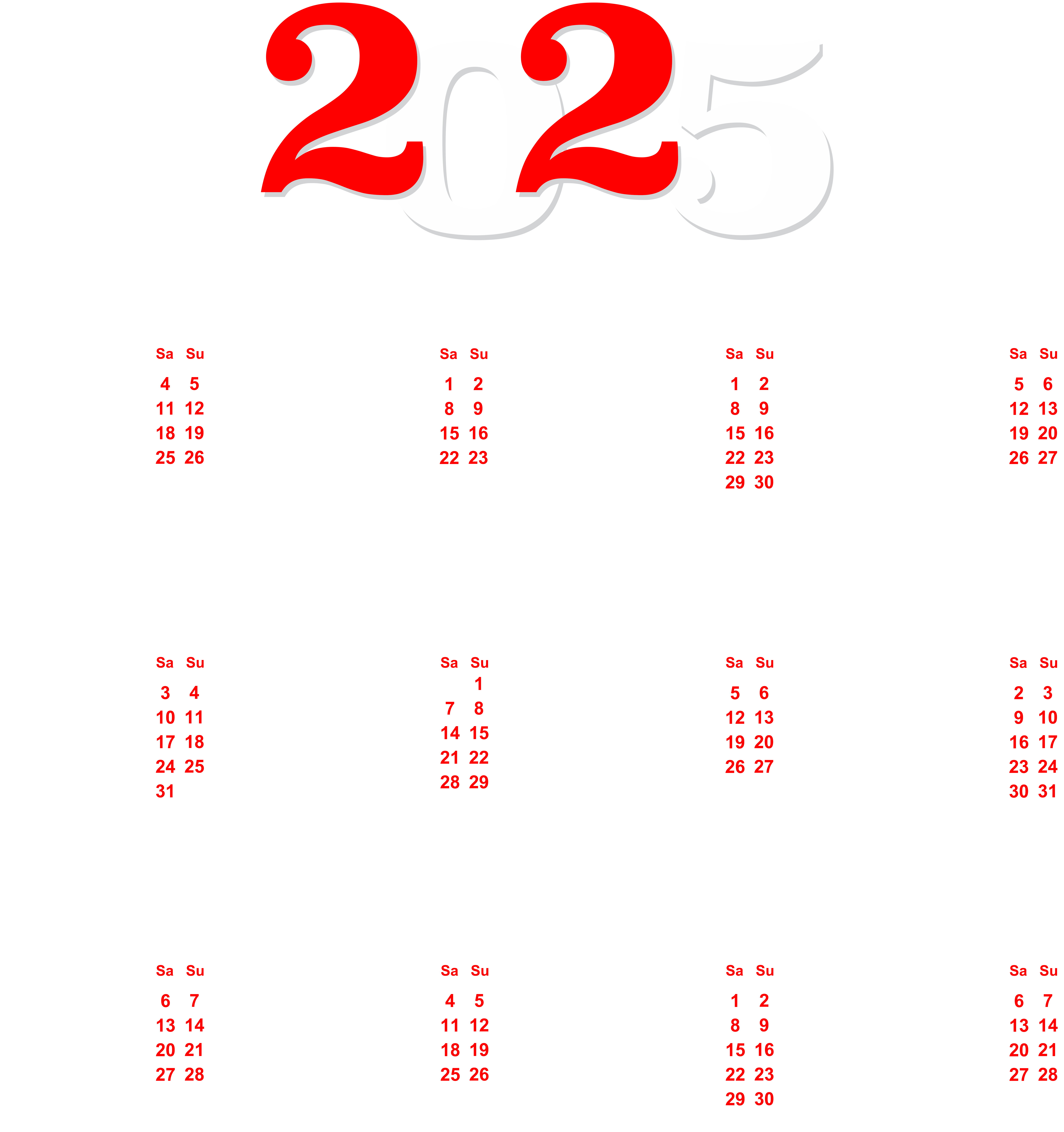 This Clipart Image: "2025 Calendar White Transparent PNG Clip Art" is part of