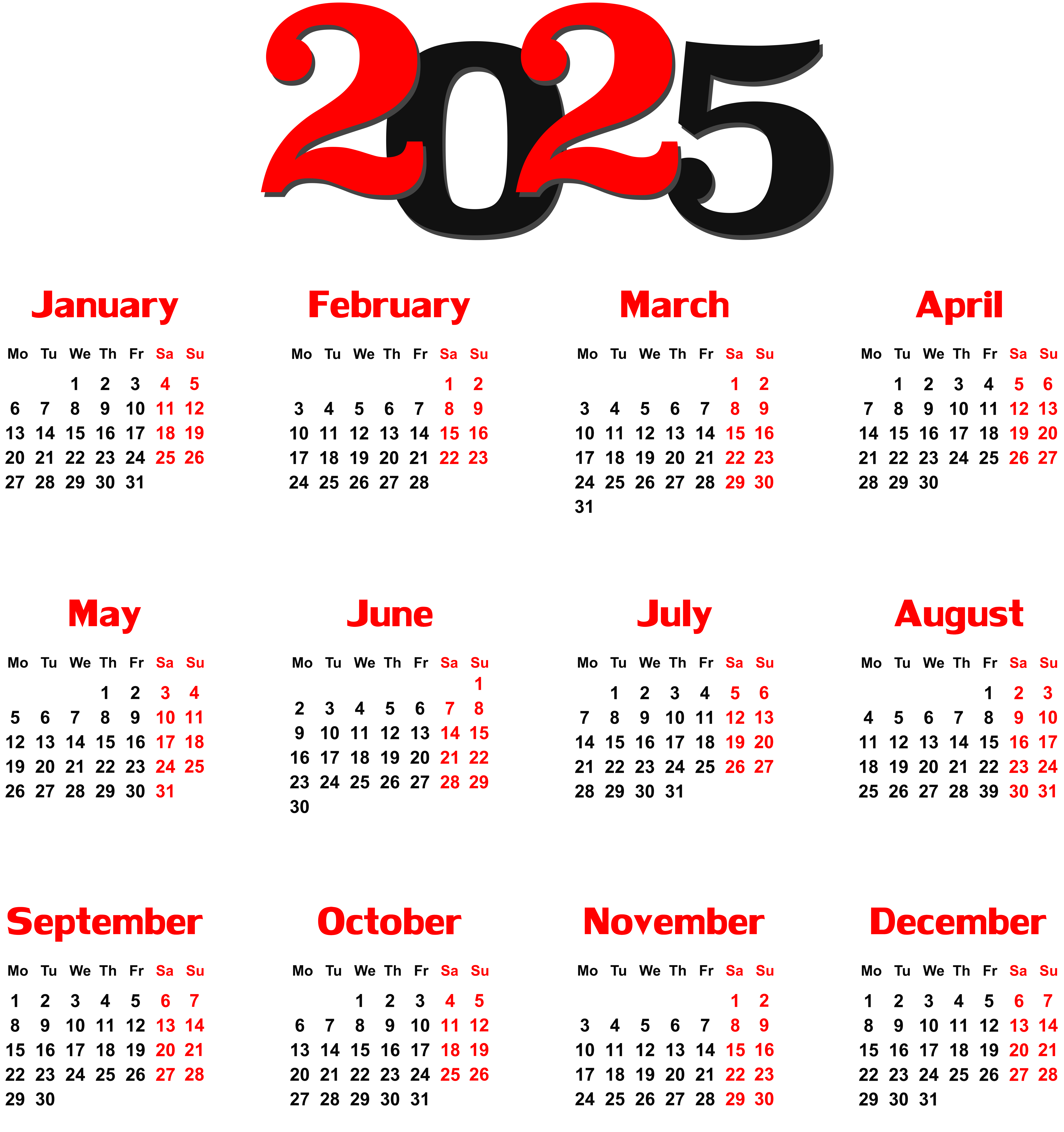 This Clipart Image: "2025 EU Calendar Black Transparent PNG Clip Art" is part of
