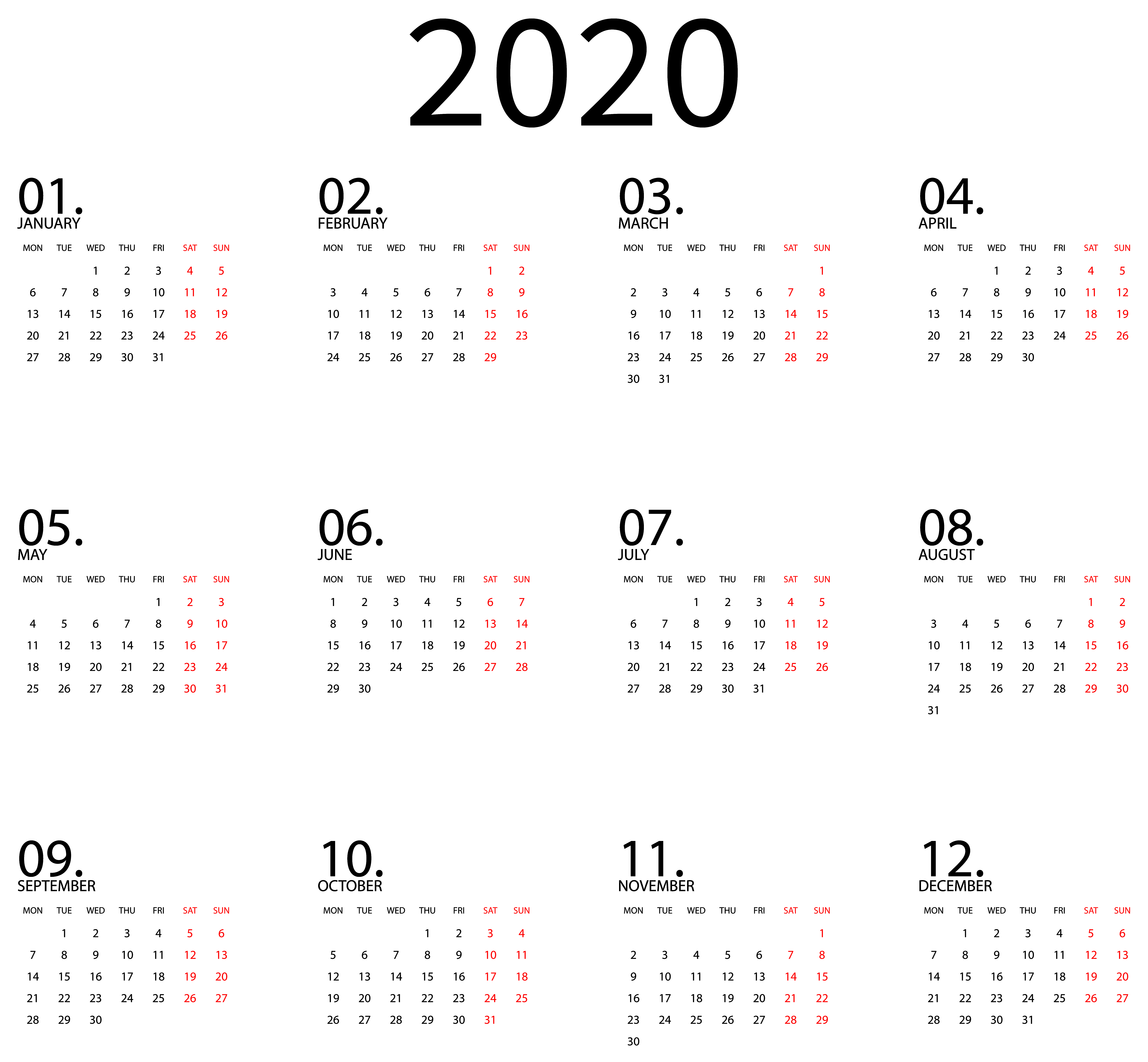 This Clipart Image: "Calendar 2020 Black Transparent Clipart" is part of