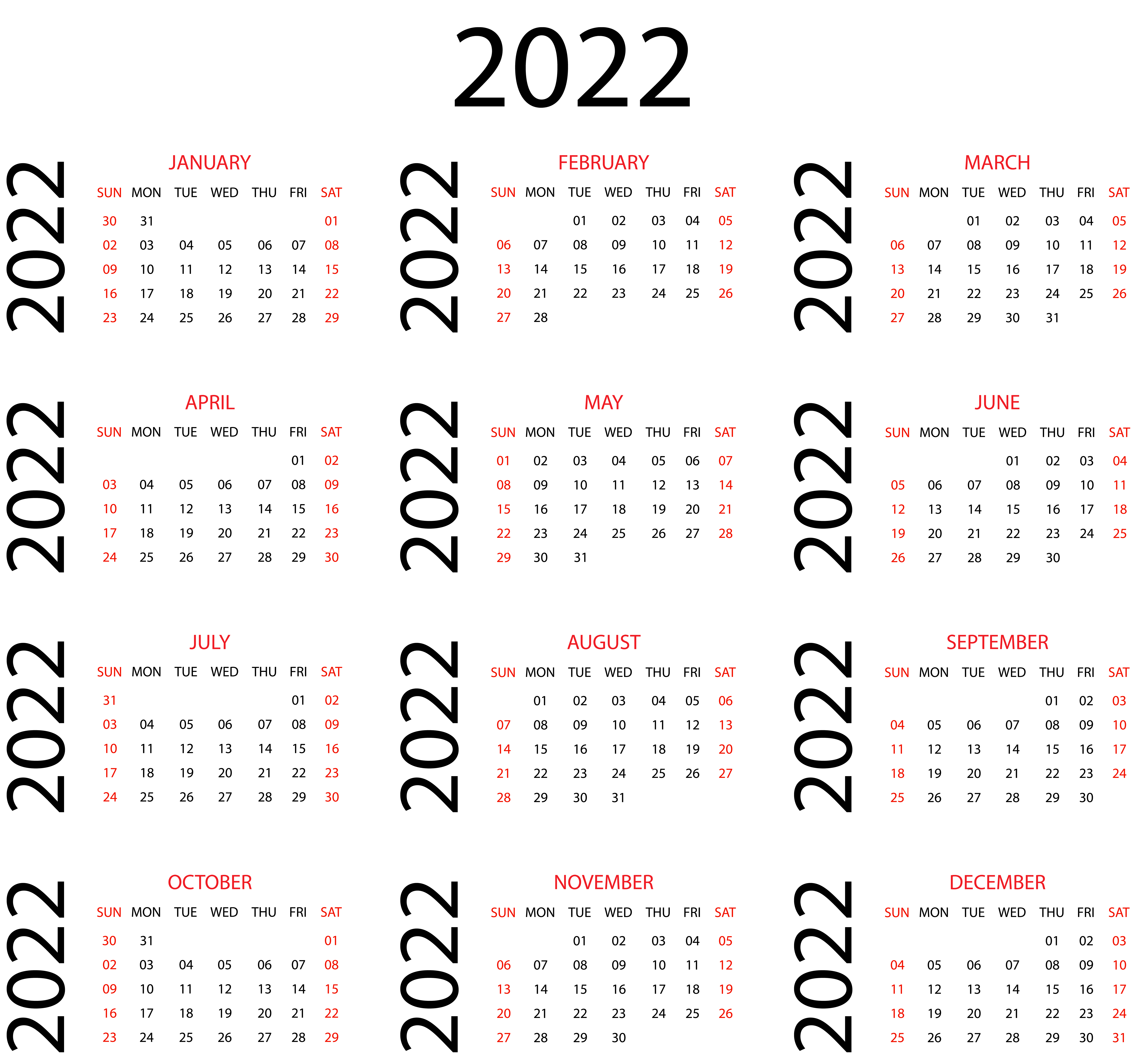 This Clipart Image: "Calendar for 2022 US Transparent PNG Clipart" is part of