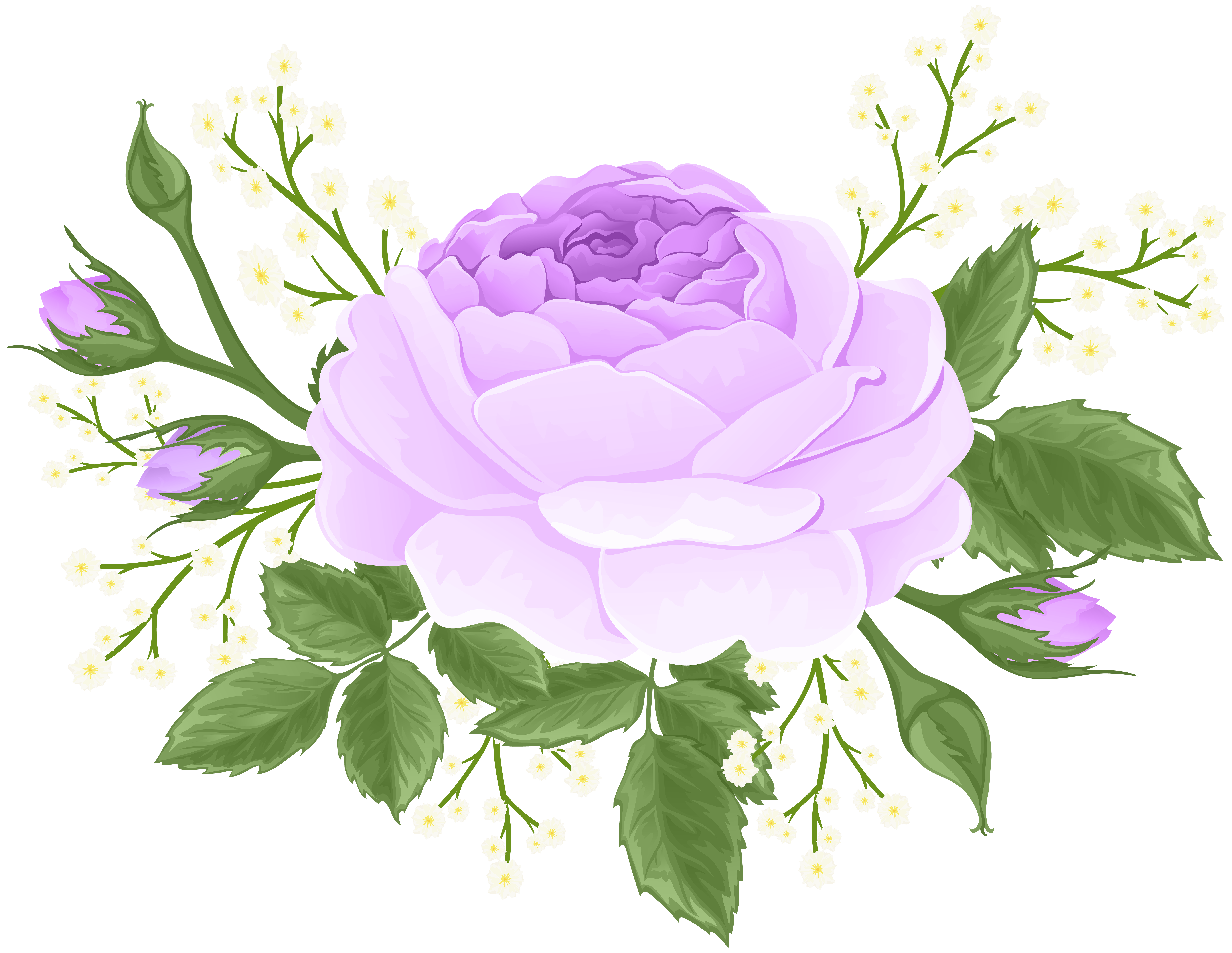 This Clipart Image: "Purple Rose with White Flowers PNG Clip Art Image" is part of