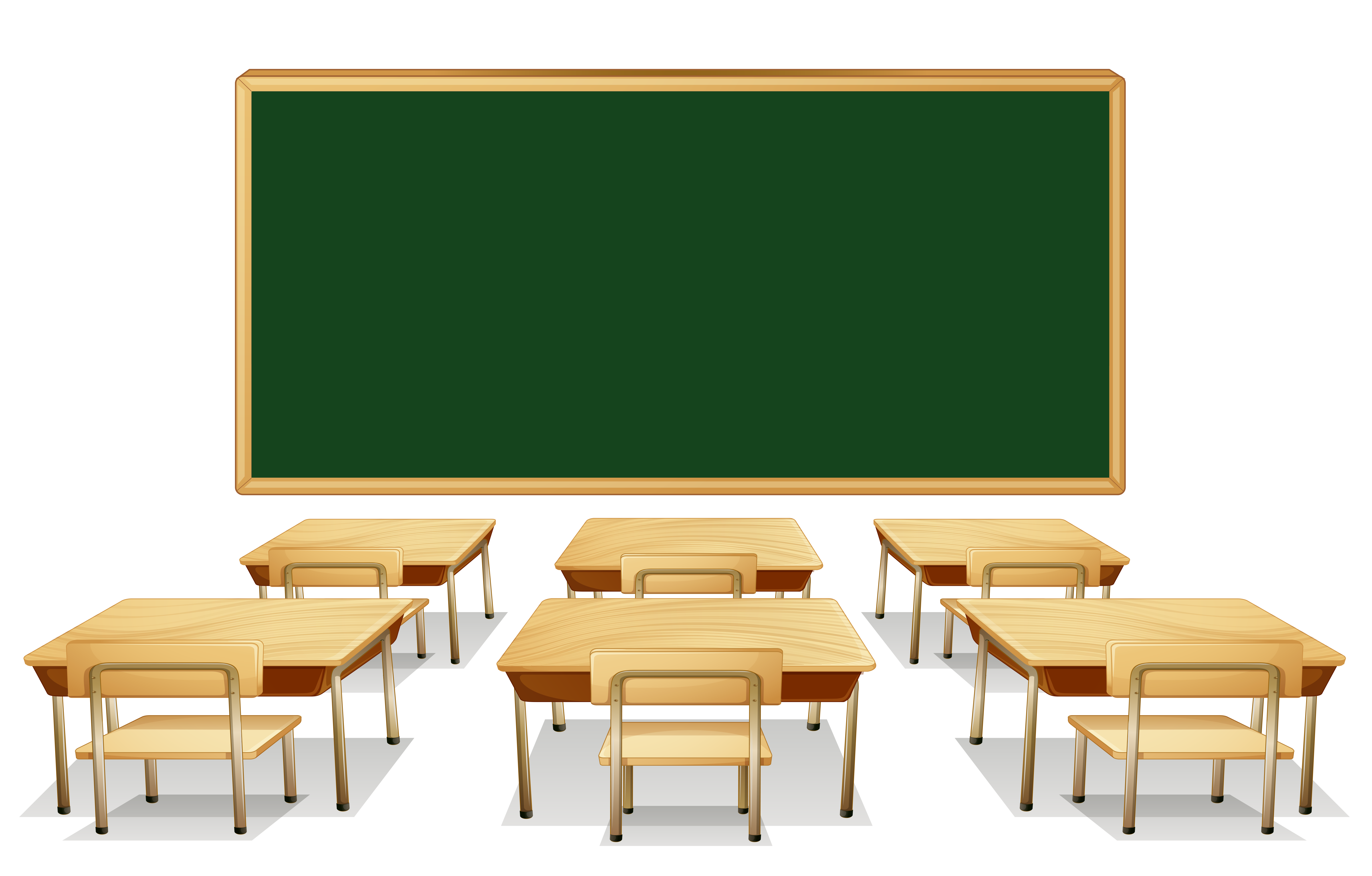 This Clipart Image: "Classroom with Green Board and Desks PNG Clipart Image" is part of