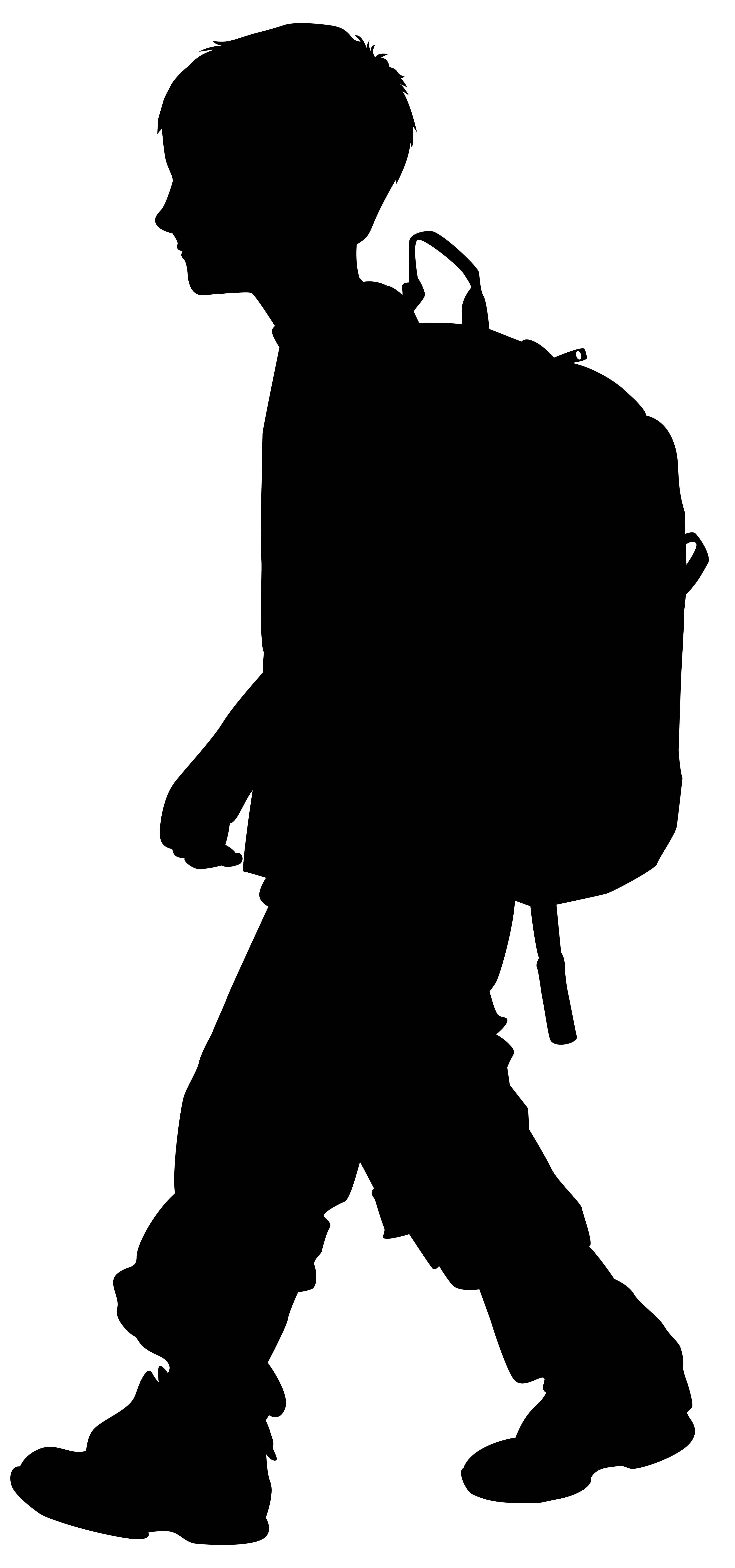 This Clipart Image: "Boy with Backpack Silhouette PNG Clip Art Image" is part of