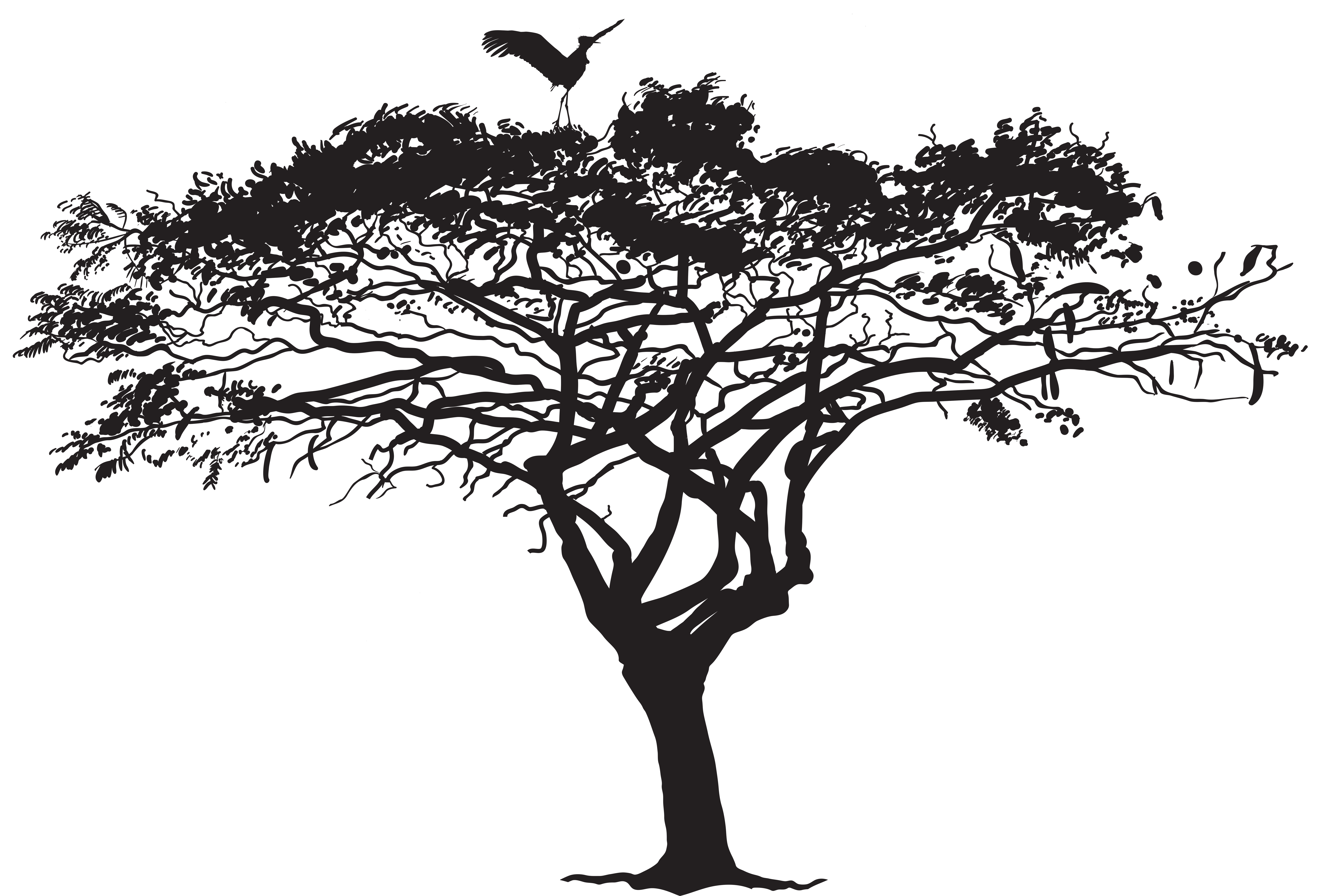 This Clipart Image: "Exotic Tree and Bird Silhouette PNG Clip Art Image" is part of