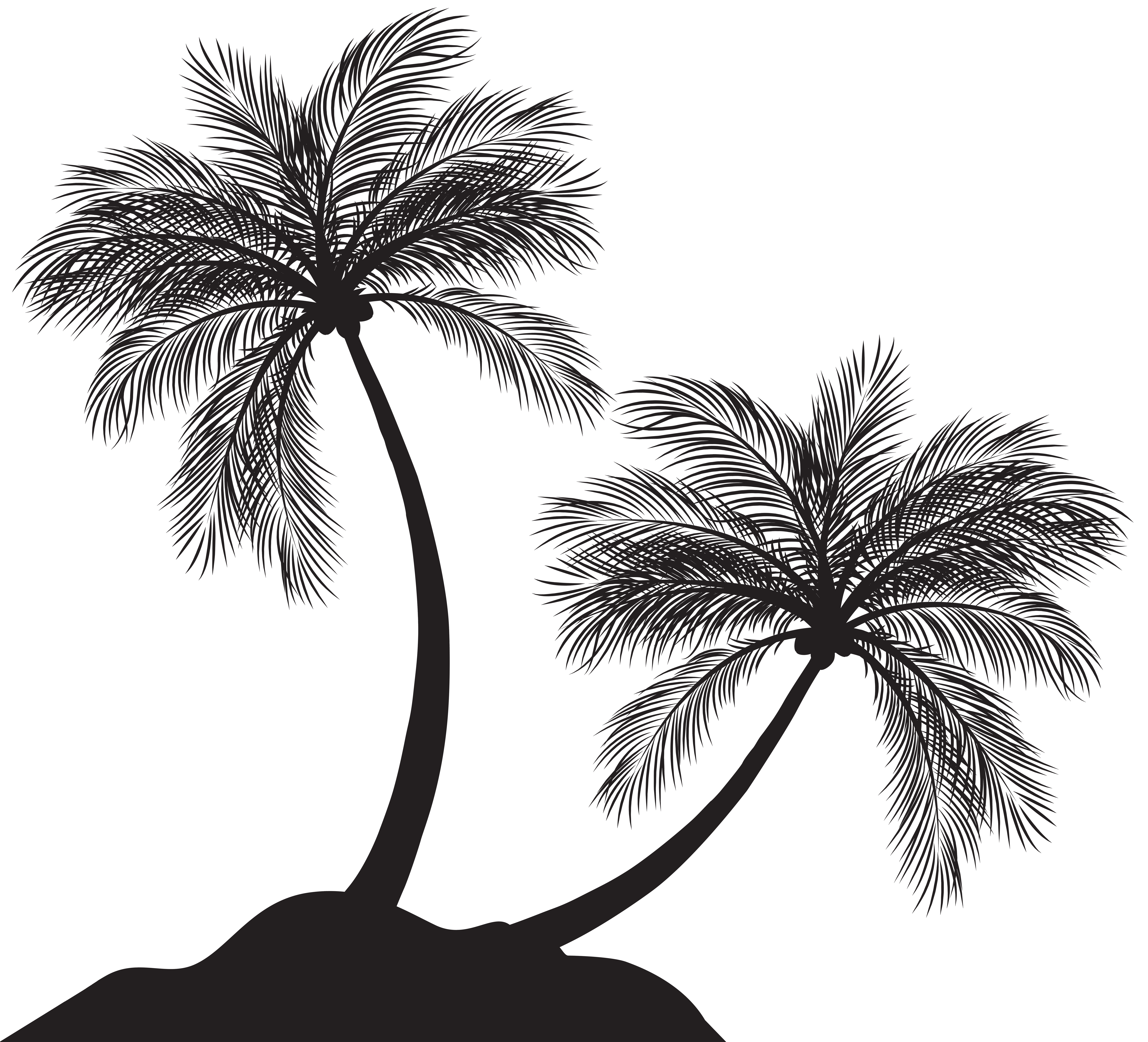 This Clipart Image: "Two Palm Trees Silhouette PNG Clip Art" is part of