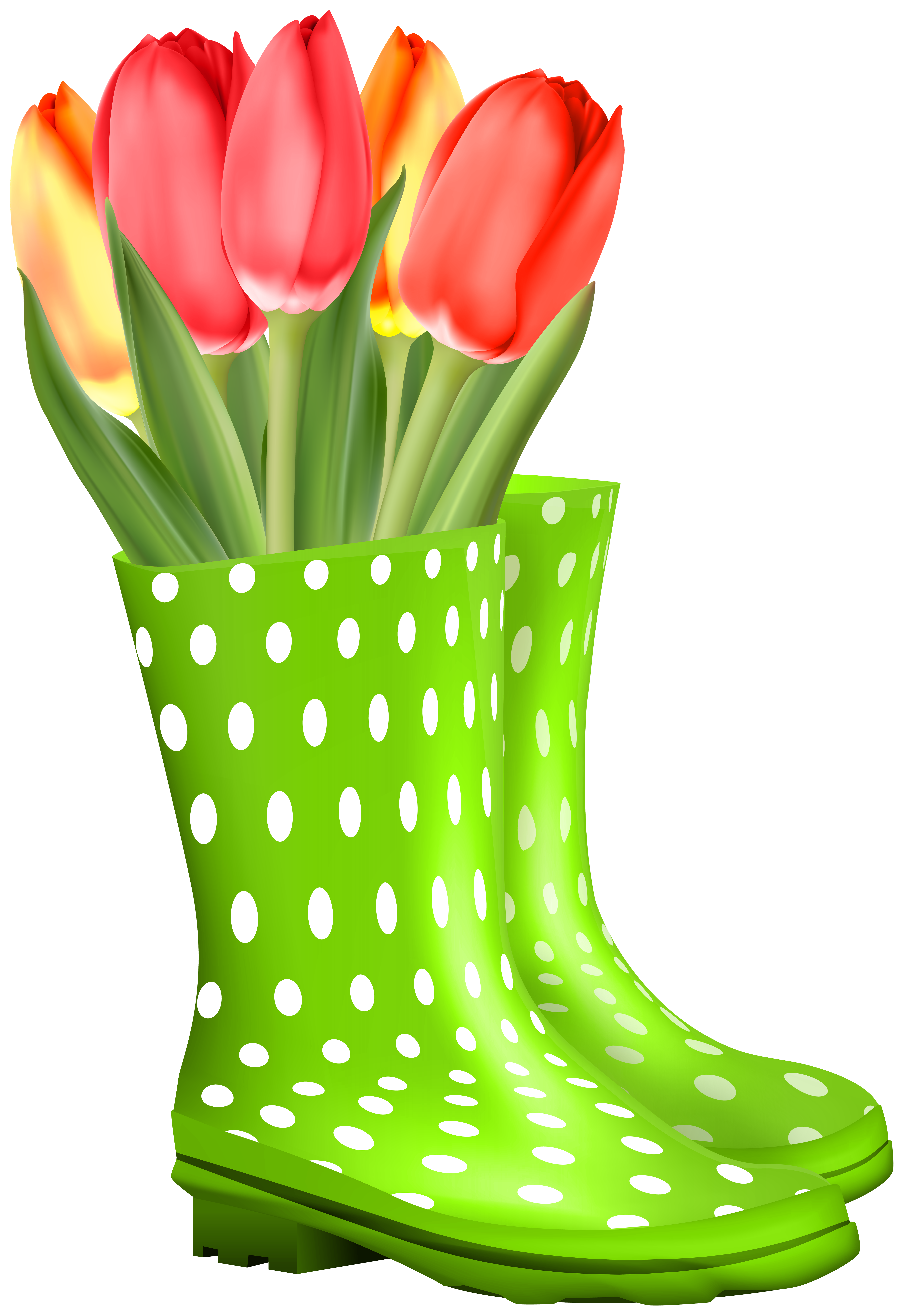 This Image: "Green Rubber Boots with Tulips Transparent Image" is part of