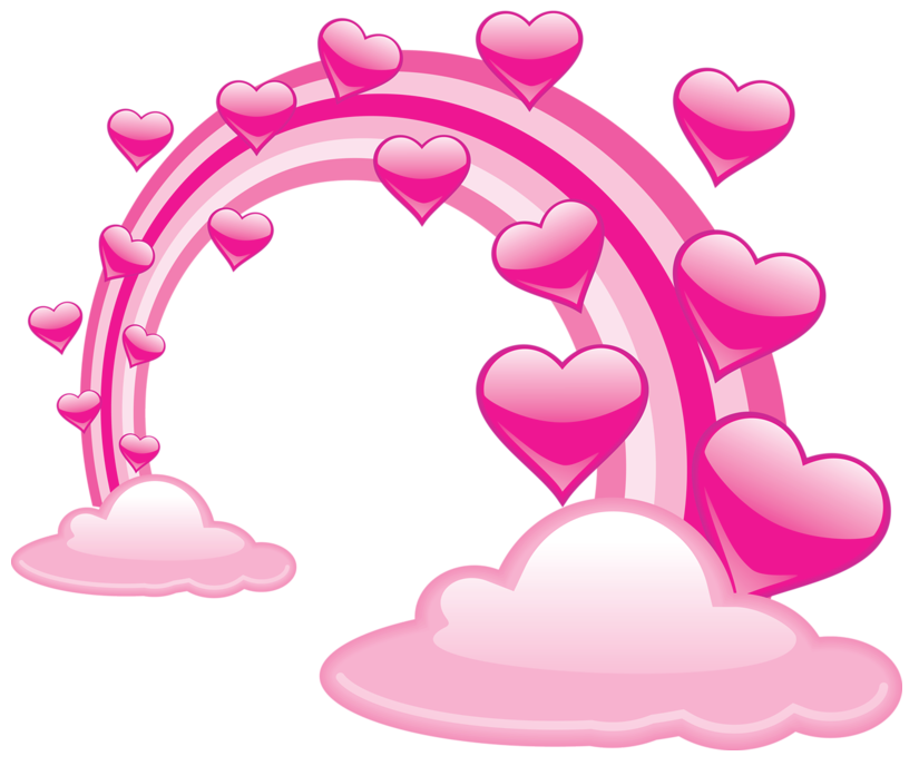 This Clipart Image: "Pink Valentine Clouds With Hearts and Pink Rainbow PNG Clipart" is part of