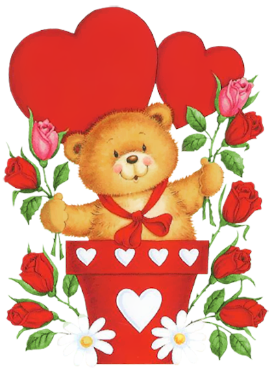 This Image: "Valentine Teddy with Heart and Roses in Pot PNG Picture" is part of