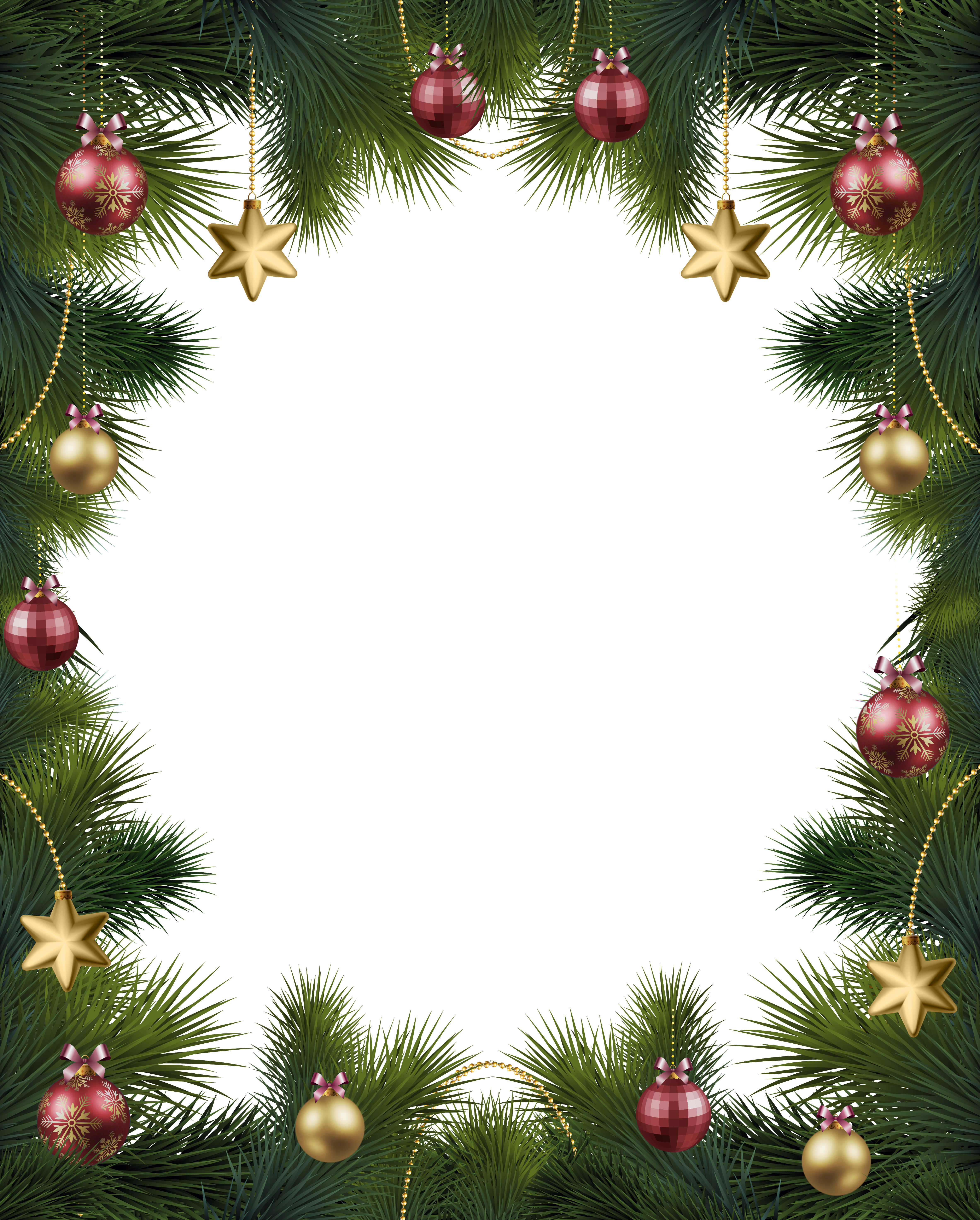 This Holiday Frame: "Christmas Pine Transparent Frame with Ornaments" is part of