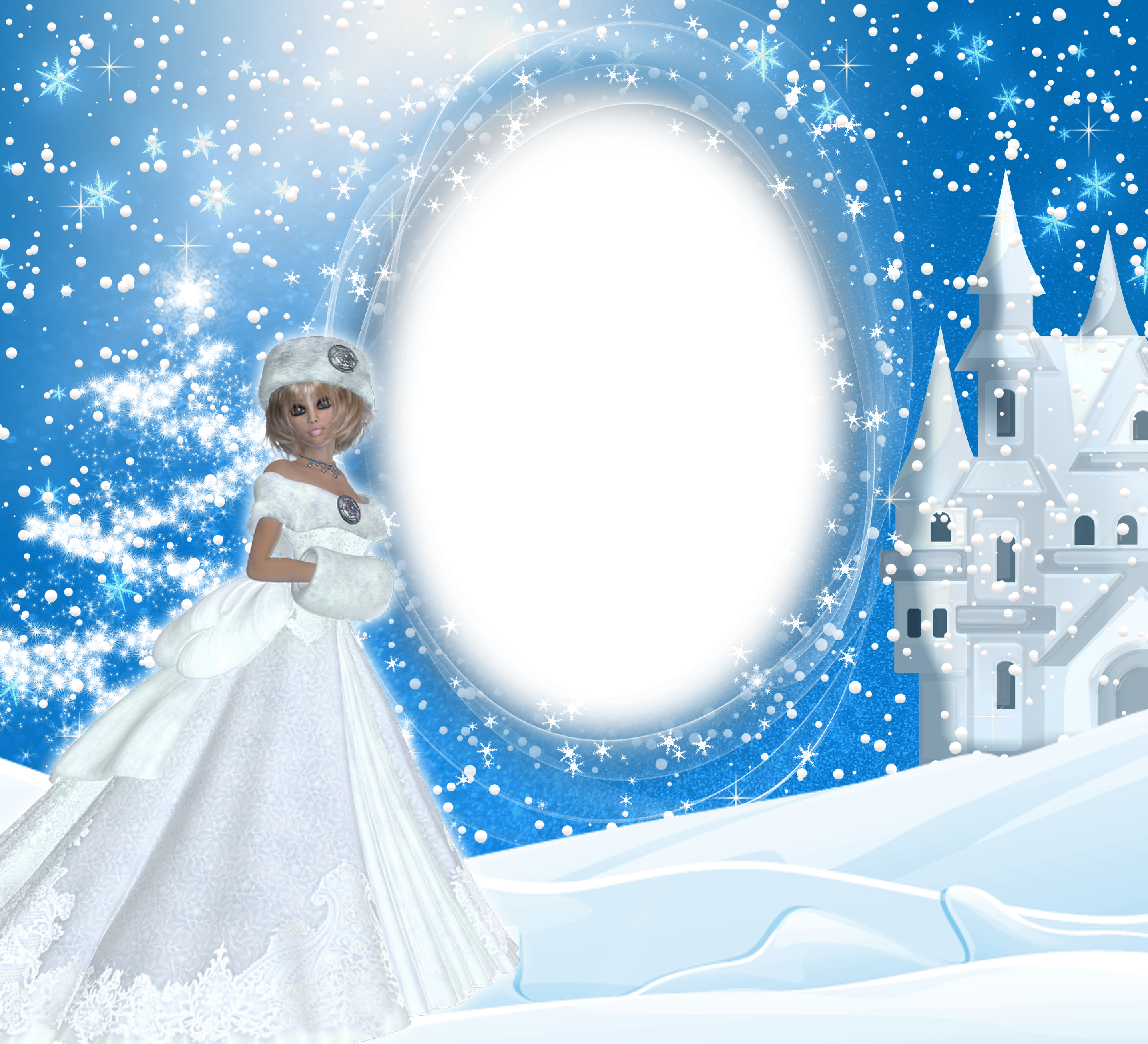 This Holiday Frame: "Winter Snow Lady PNG Frame" is part of